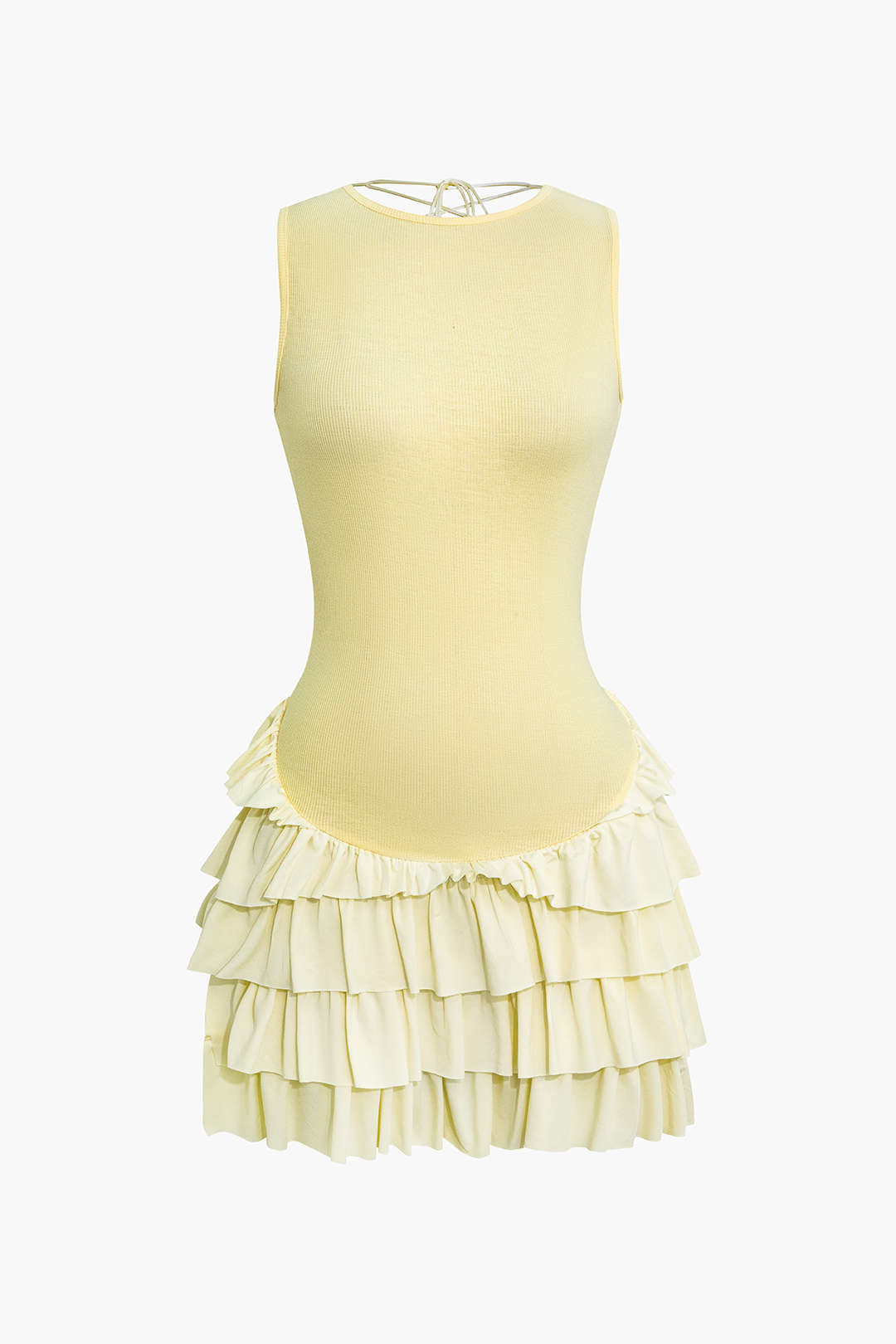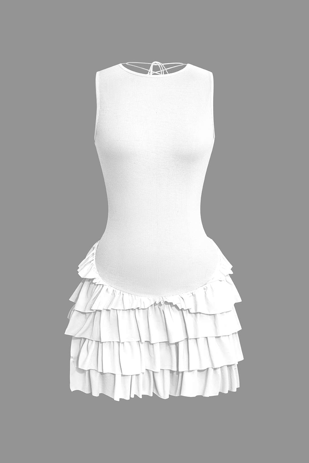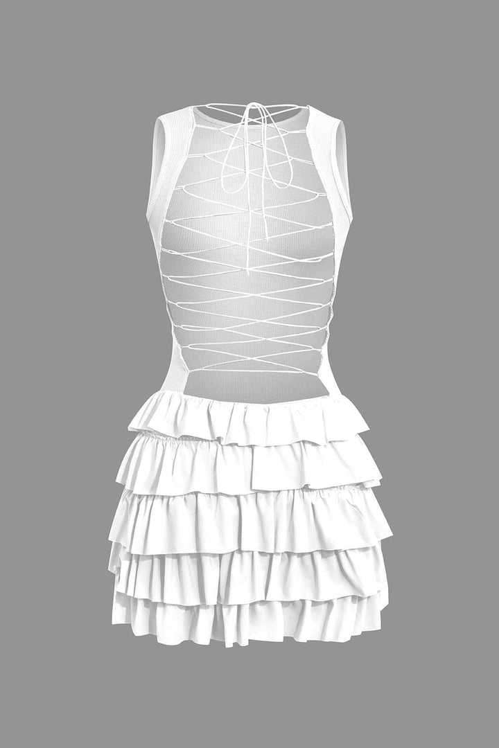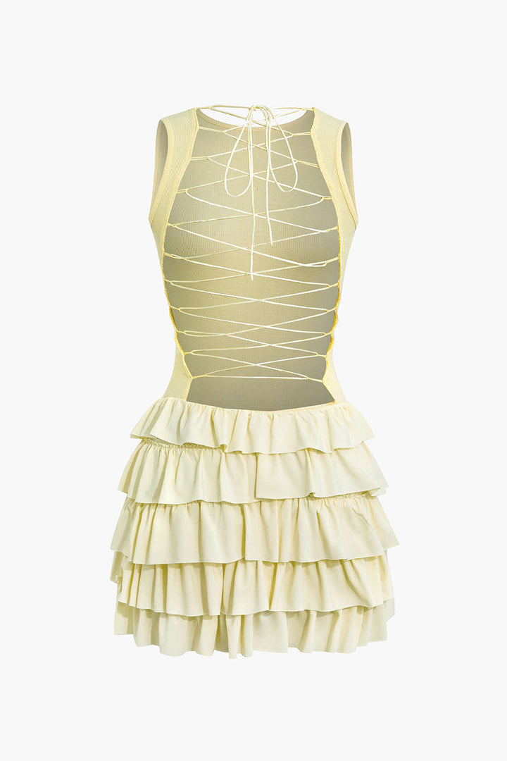 Lace Up Back Sleeveless Ruffle Hem Mini Dress