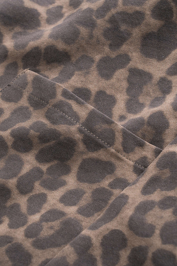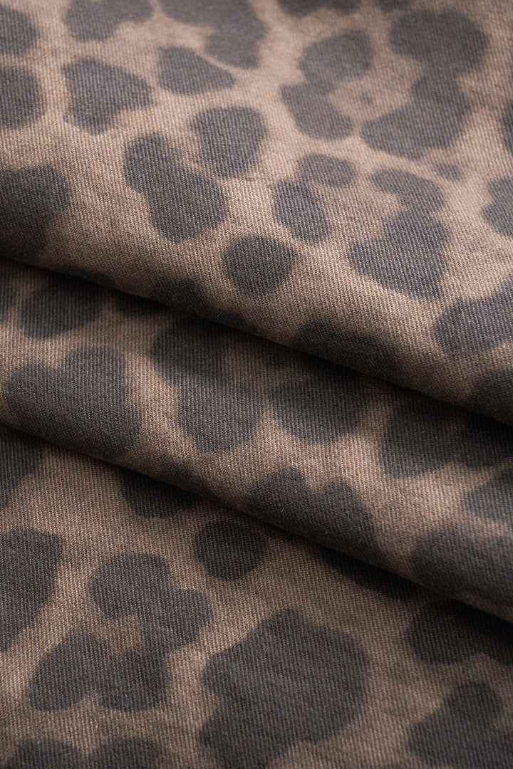 Leopard Print Denim Wide Leg Pants