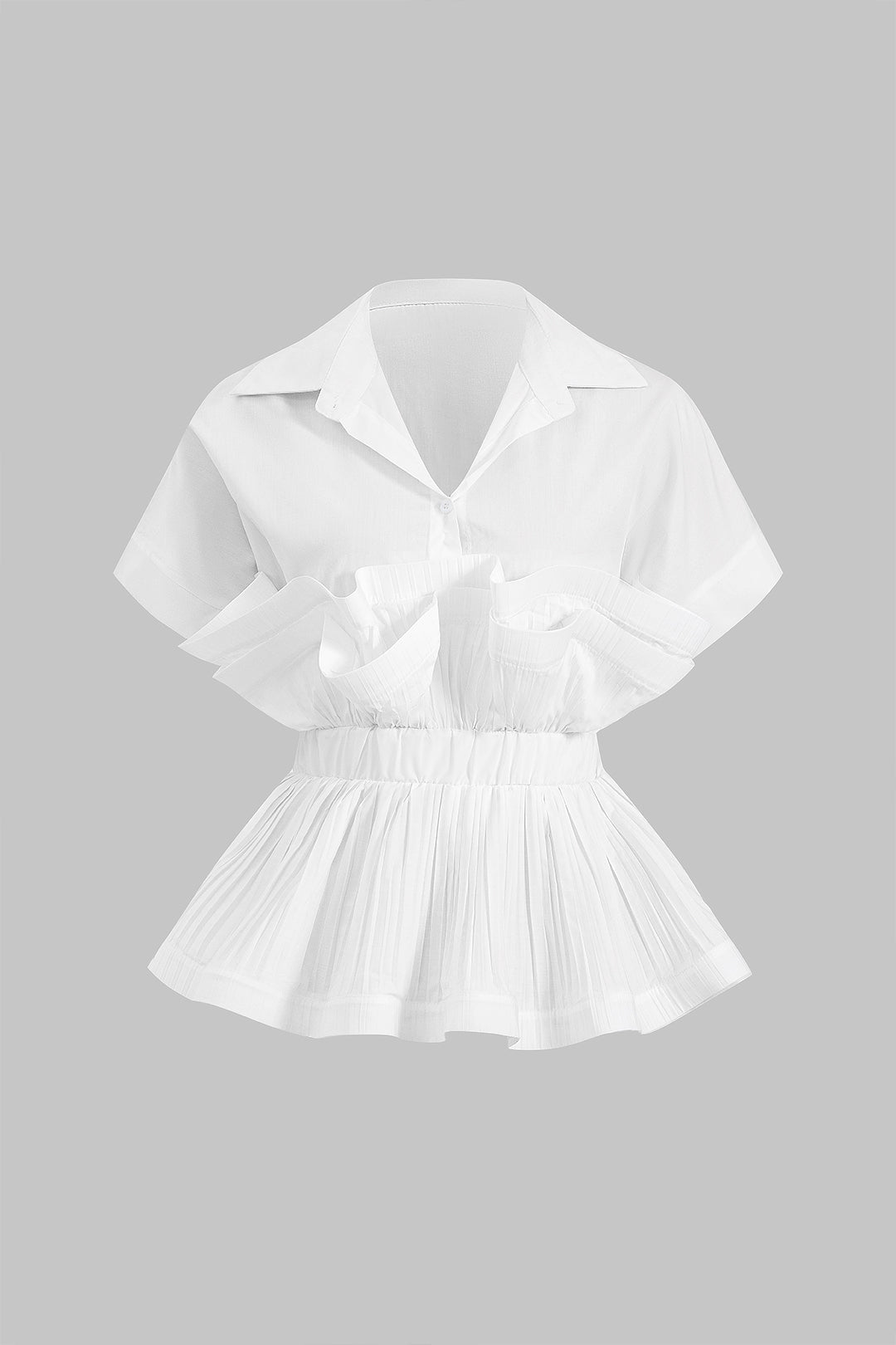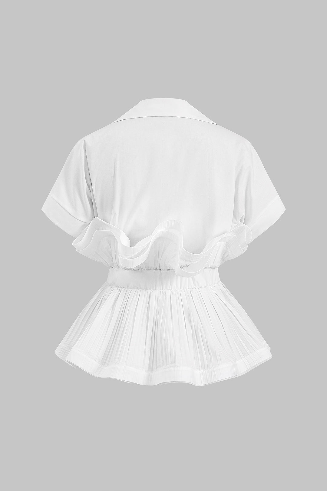 قميص بأكمام قصيرة وأزرار مكشكشة
