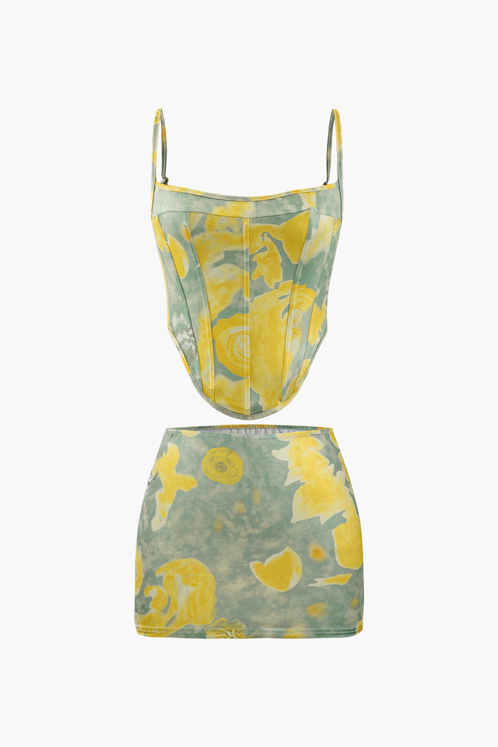 المطبوع مشد كامي توب وتنورة صغيرة طقم