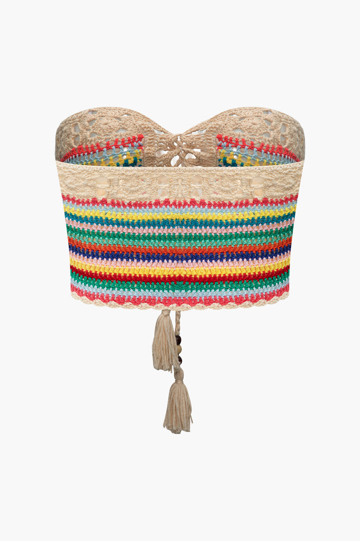 Rainbow Crochet Tie Front Tube Top And Shorts Set