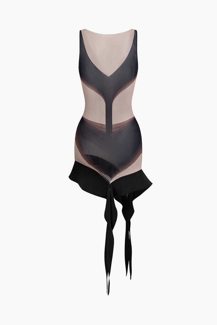 Sheer Abstract Mesh Asymmetric Mini Dress
