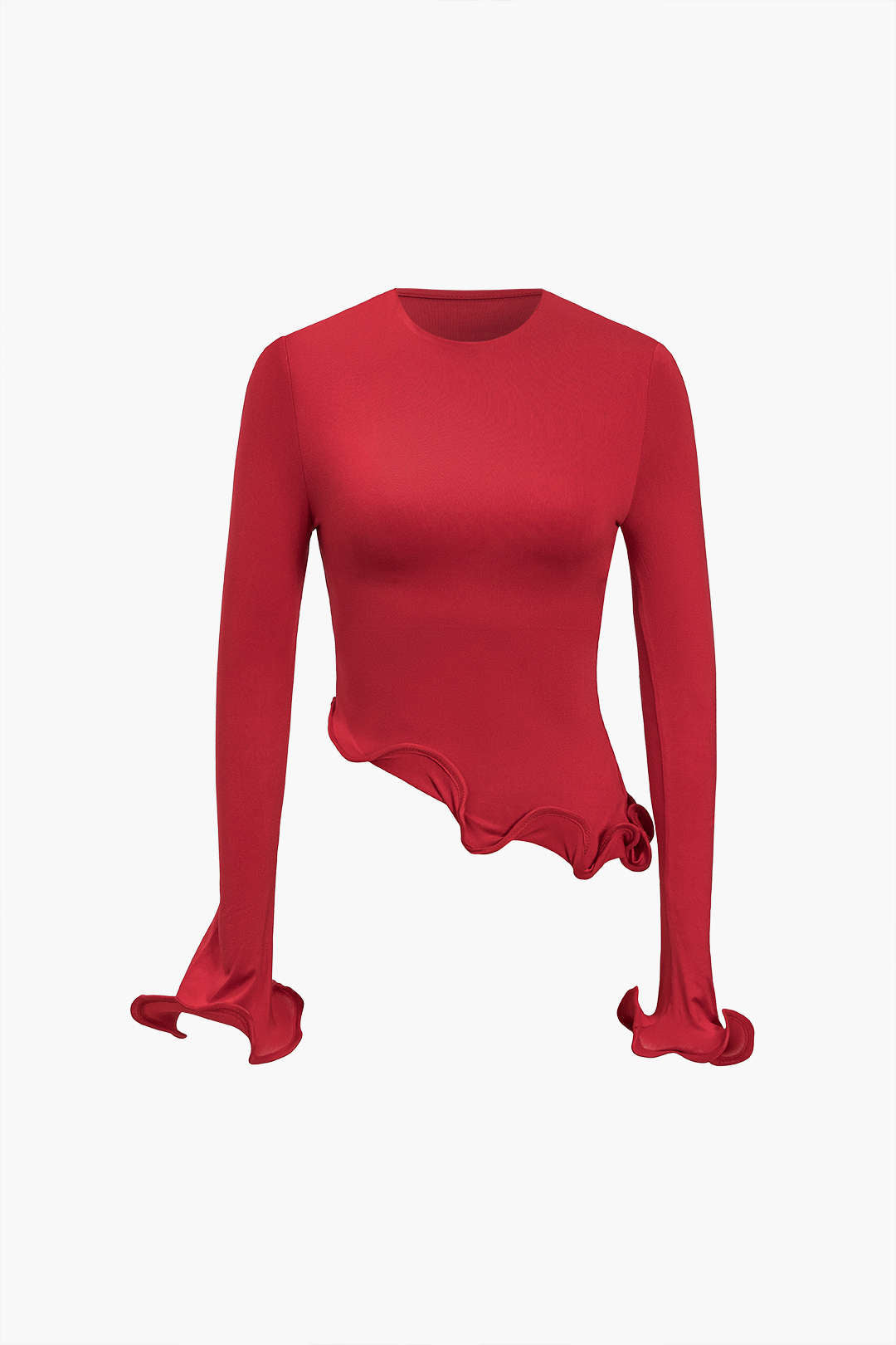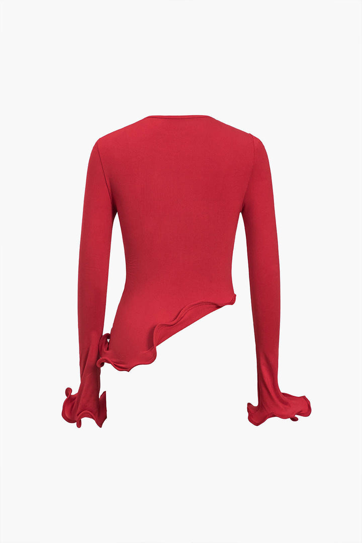 بلوزة سادة غير متماثلة بأكمام طويلة