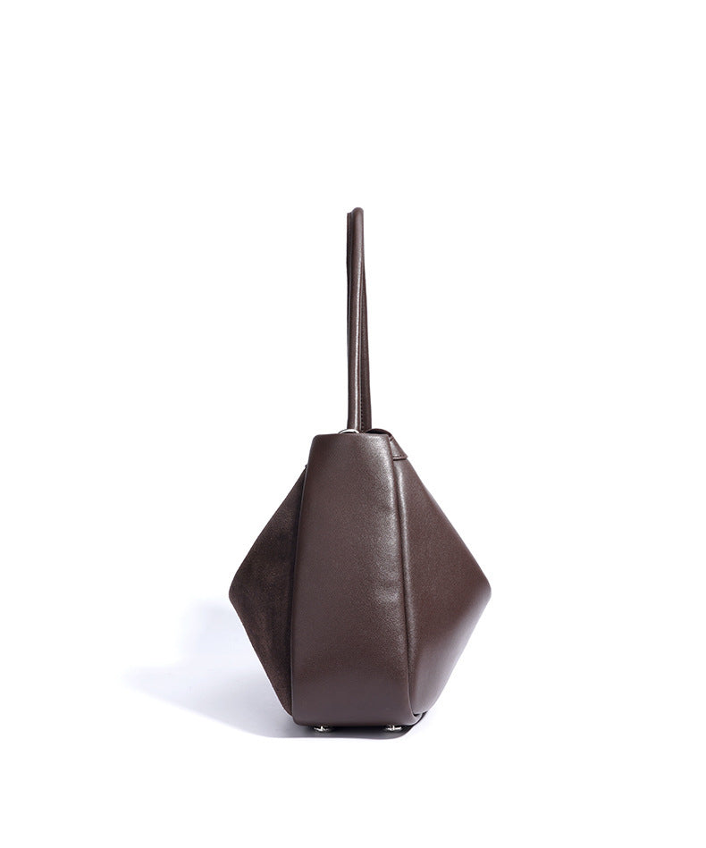 حقيبة كتف من جلد الغزال بتصميم منحني - ماهوجني
