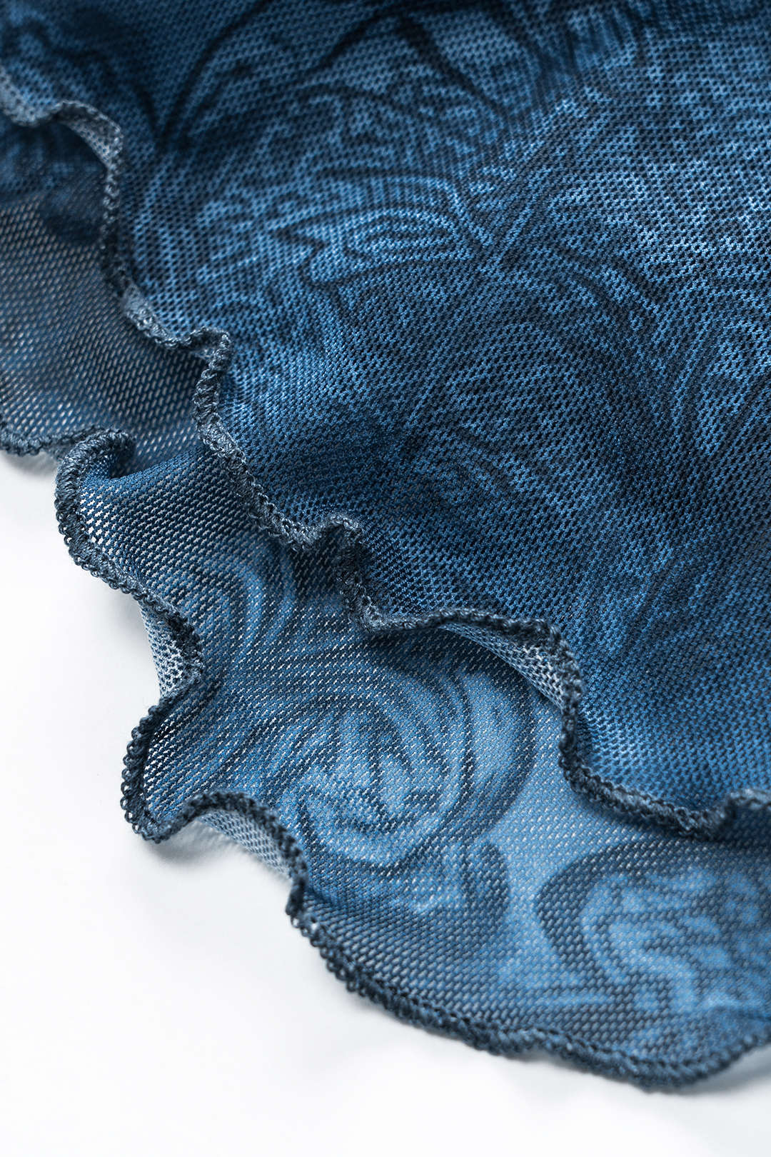 بلوزة كامي شبكية مكشكشة ومطرزة بالخرز بطباعة صبغية