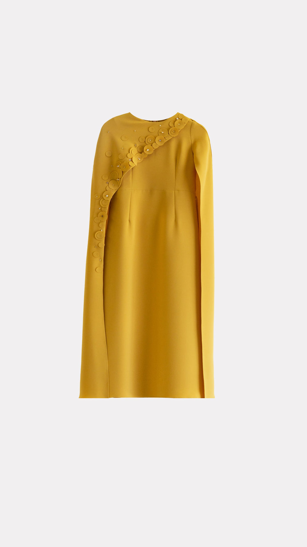 Asymmetric Cape Maxi Dress with Floral Appliqué – PETAL