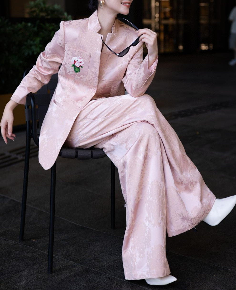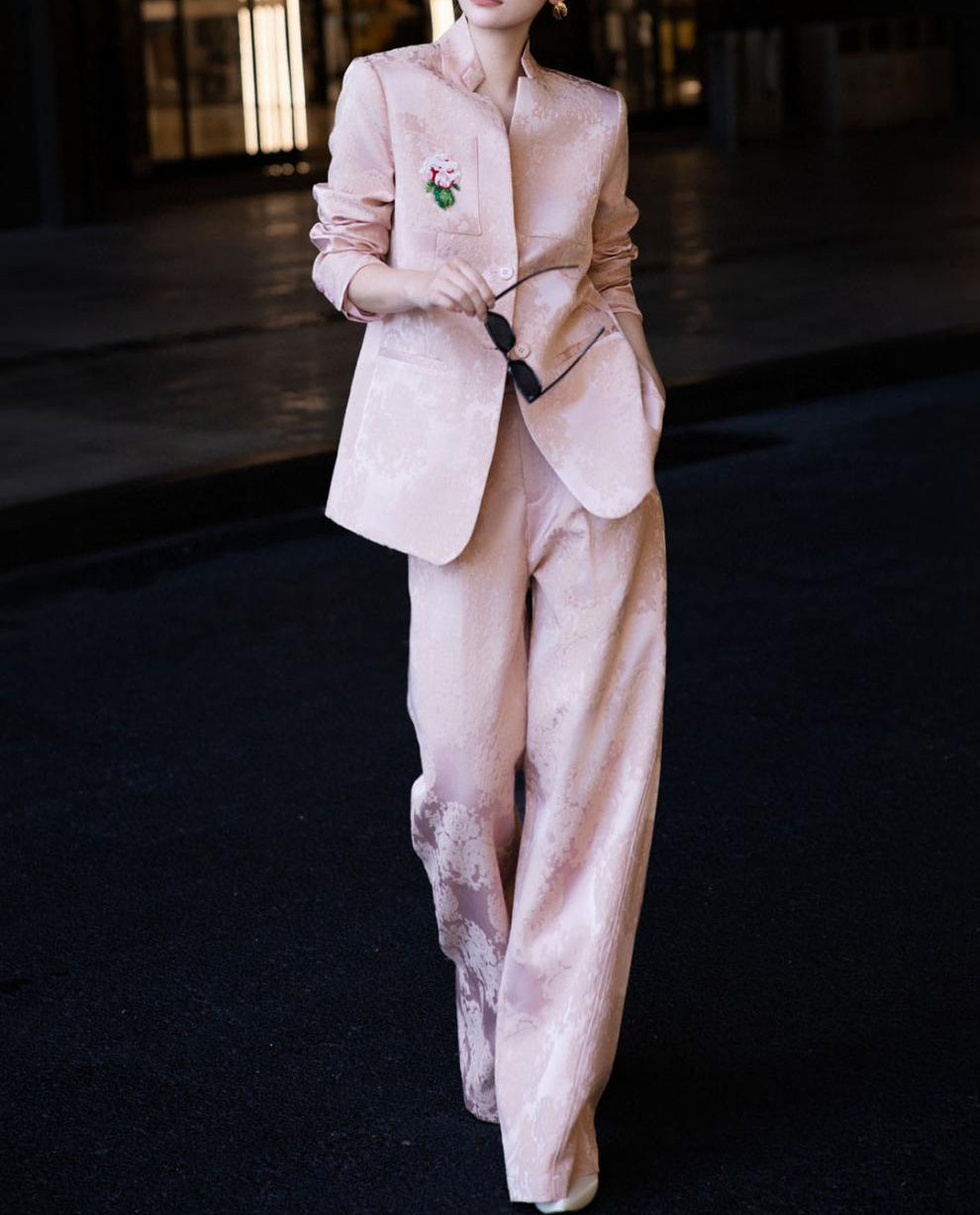brocade tailored pantsuit with floral patch – VERDANA – missodd.com