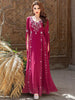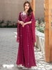 Shine elegantly in this chiffon dress, with its wide sleeves and delicate embroidery along the neckline and front. The rich color and flowing design add a touch of sophistication.