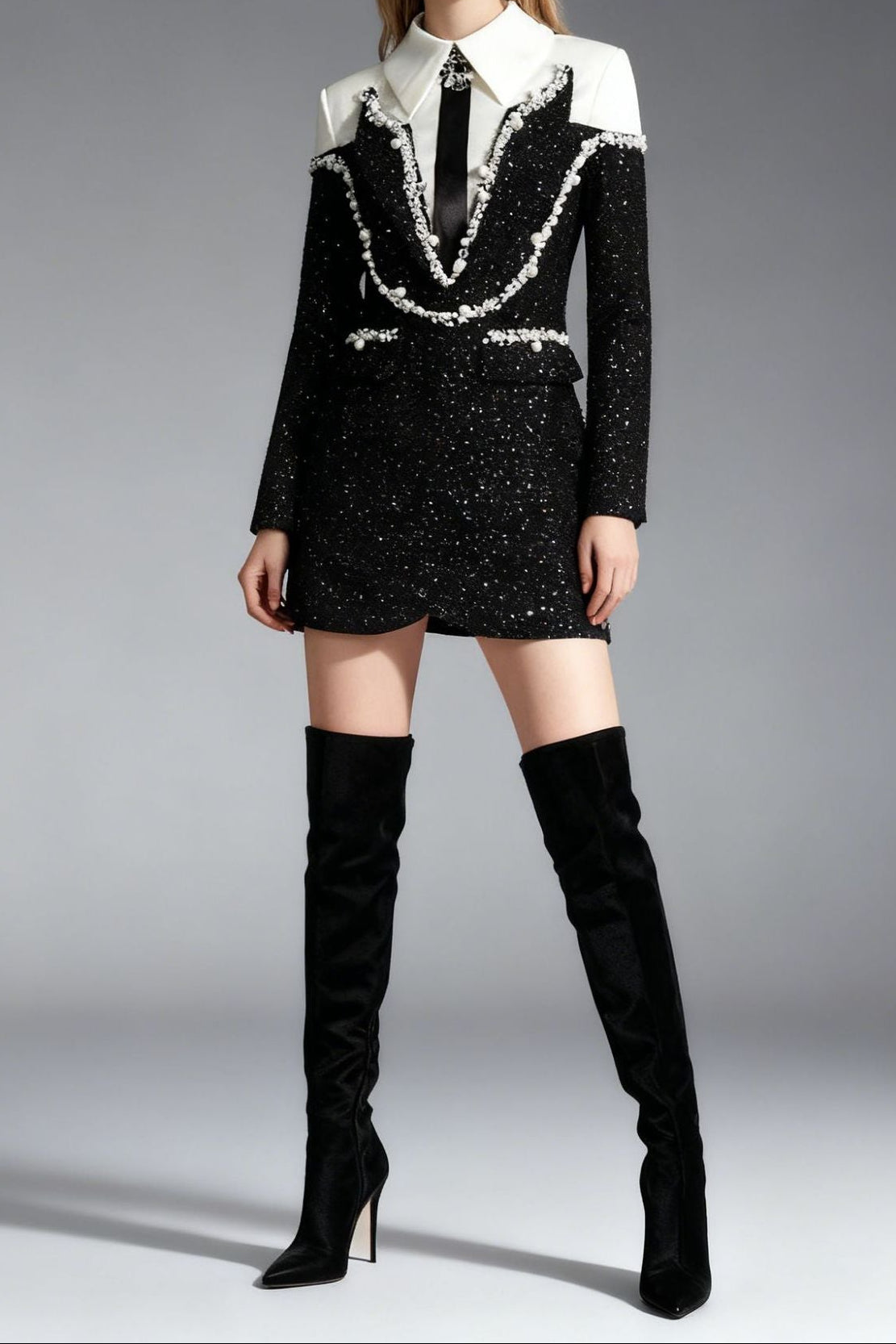 embellished tweed mini dress with pearl-trimmed lapel – VIONA – missodd.com