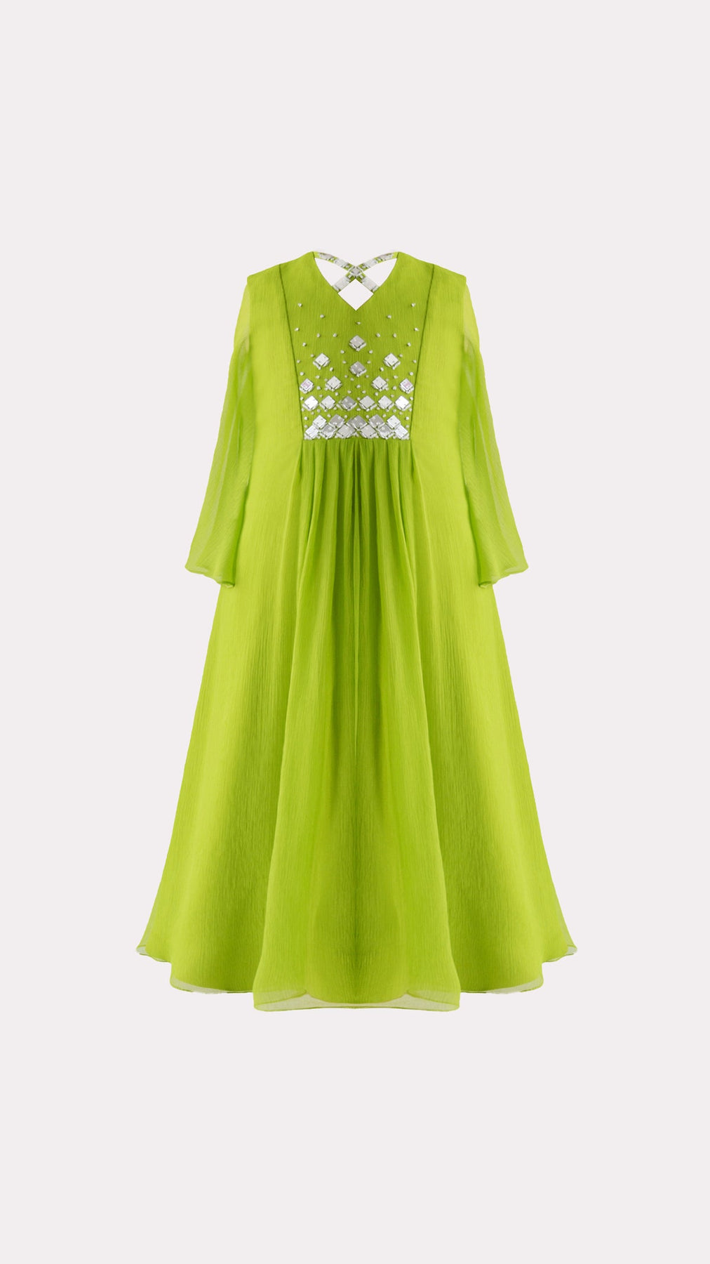 Embellished V-Neck Maxi Dress with Flared Sleeves – VERDINA