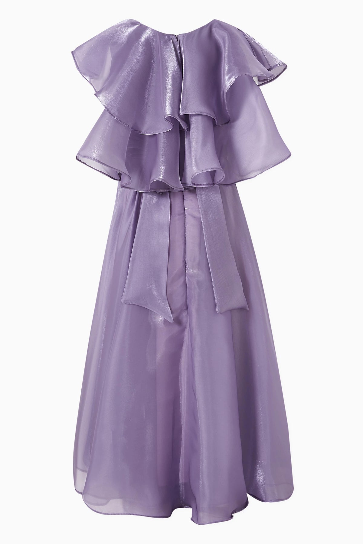 Layered Chiffon Maxi Dress with Ruffle Cape – LAVENDER