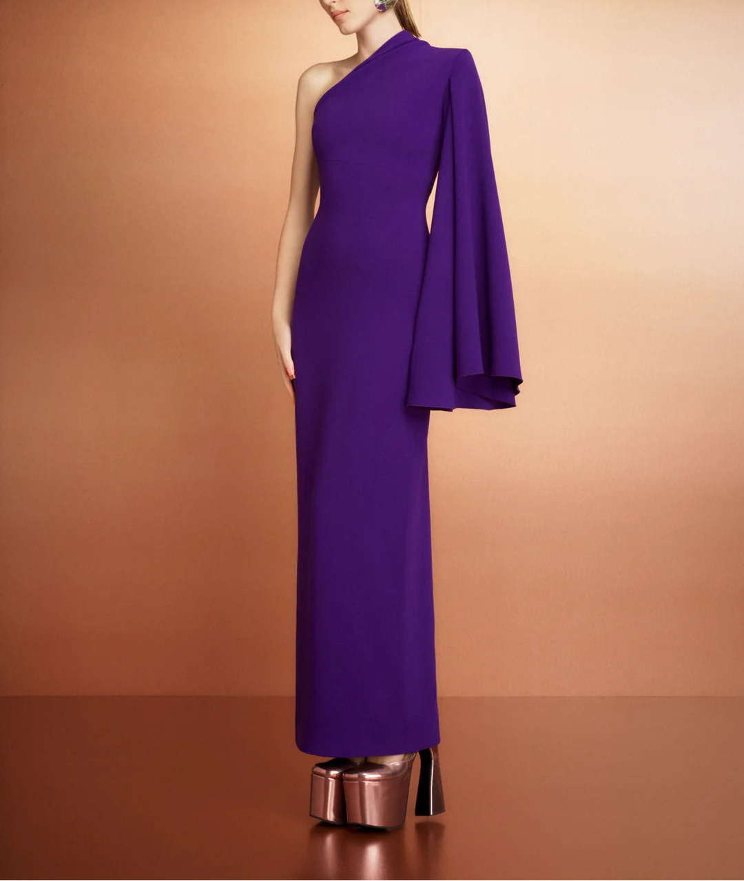 one-shoulder column dress with draped sleeve panel – ELIORA