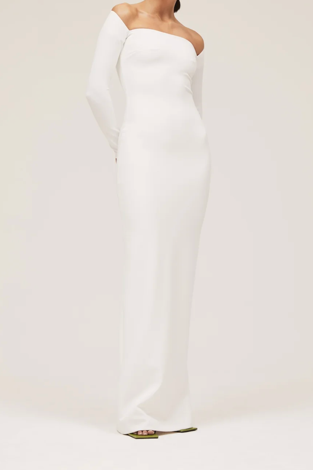 one-shoulder column gown with fitted long sleeve – IVORYA