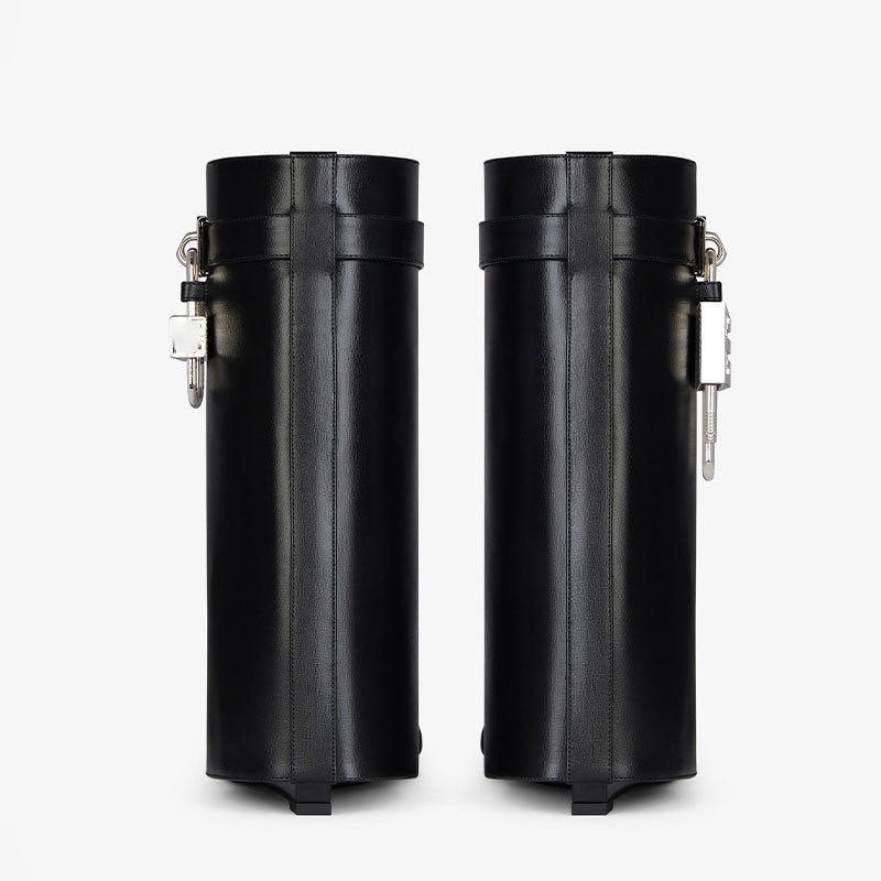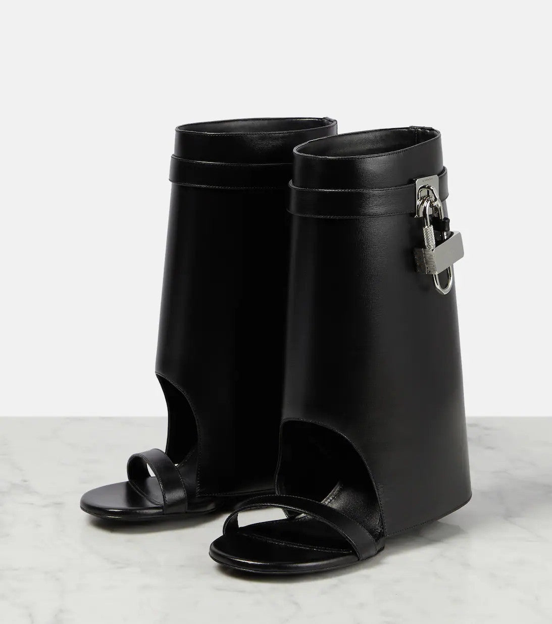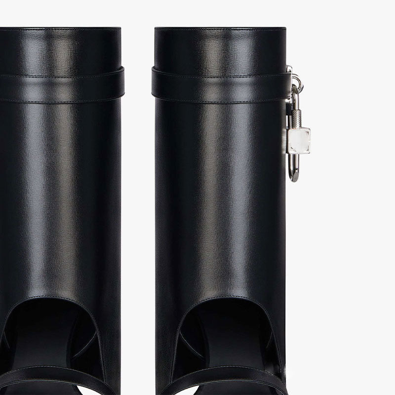 open-toe leather wedge boots with padlock detail – LUXE VAULT