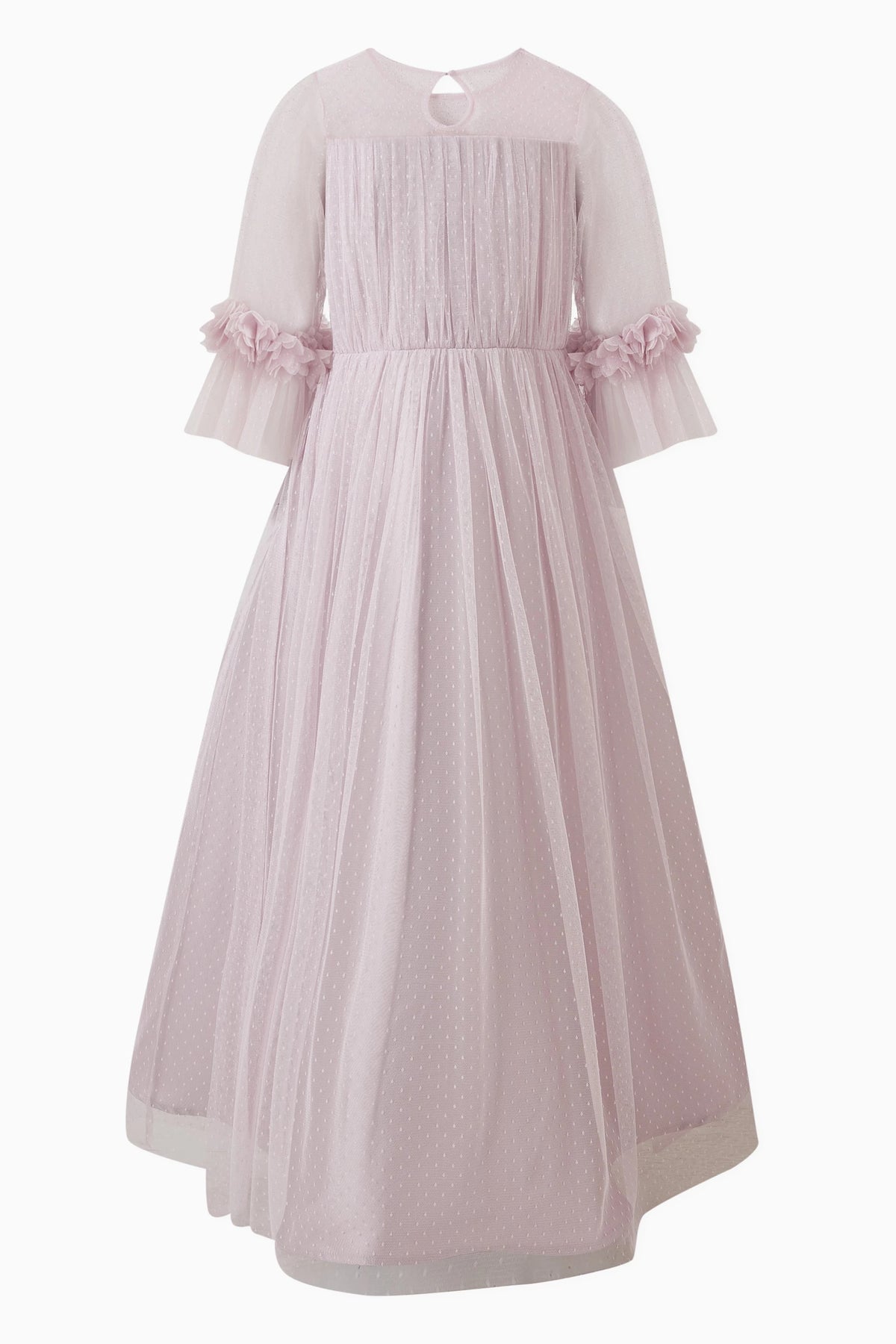 Pleated Tulle Midi Dress with Floral Sleeve Details – PETAL