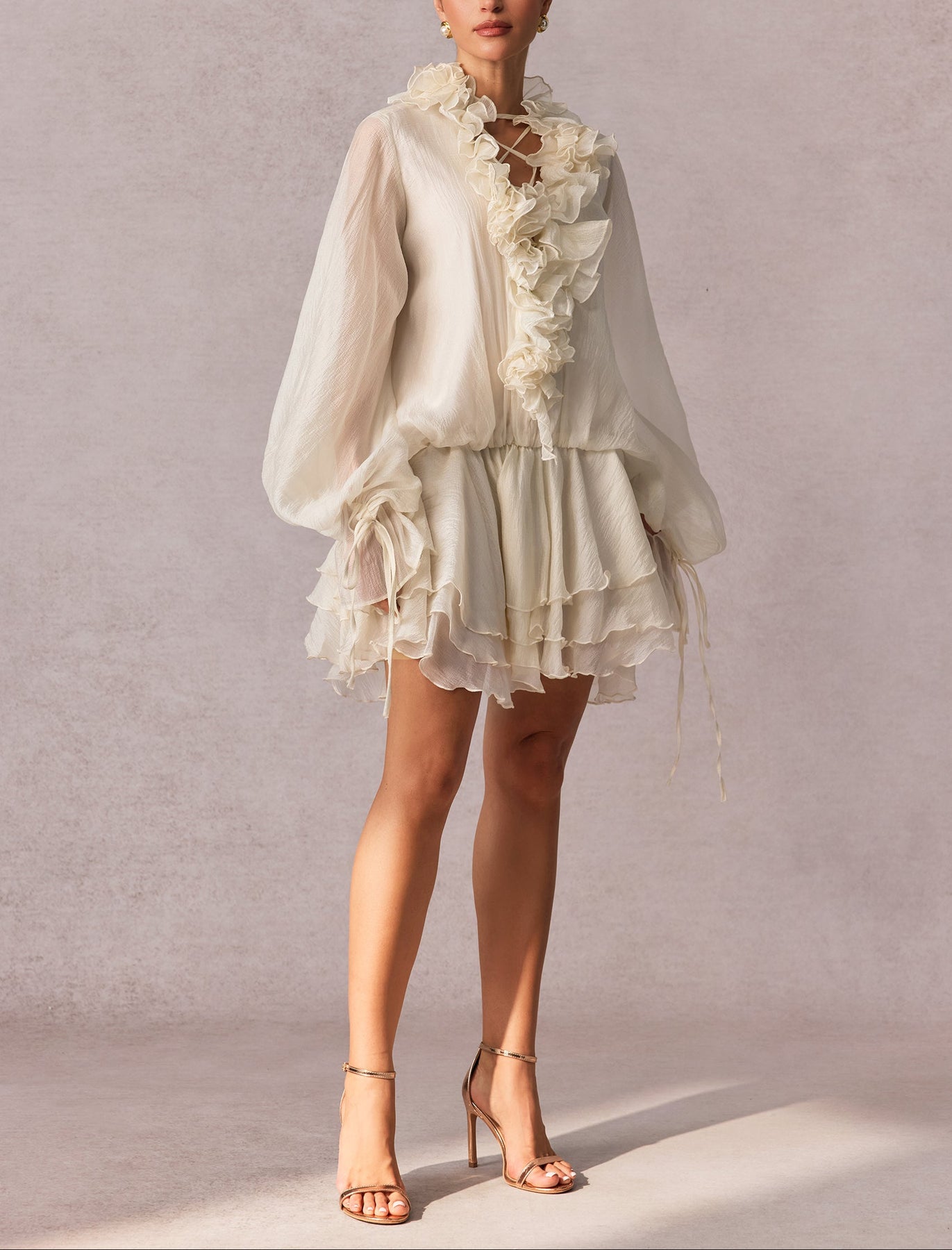 ruffled chiffon mini dress with tiered hem – ÉLOISE