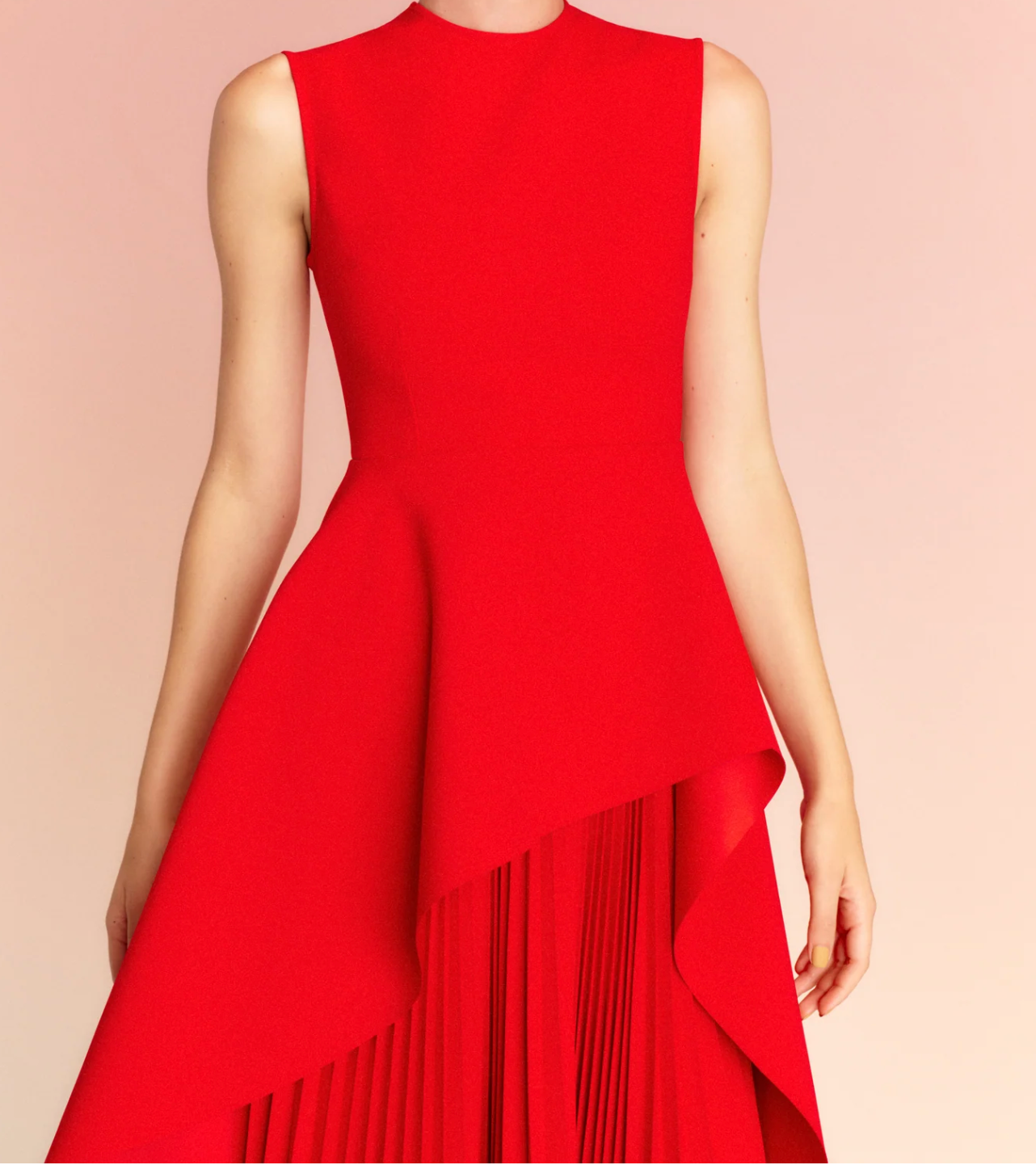 sleeveless peplum dress with layered pleated skirt – MARIGOLD