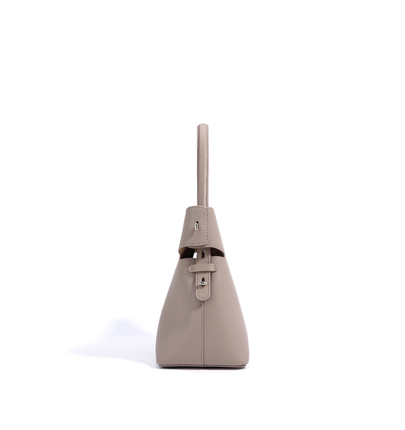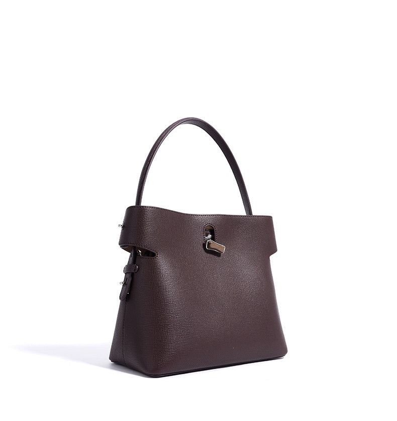 Elegant handbag crafted from high-quality leather, featuring a stylish metal turn lock and a single top handle - perfect for elevating looks.