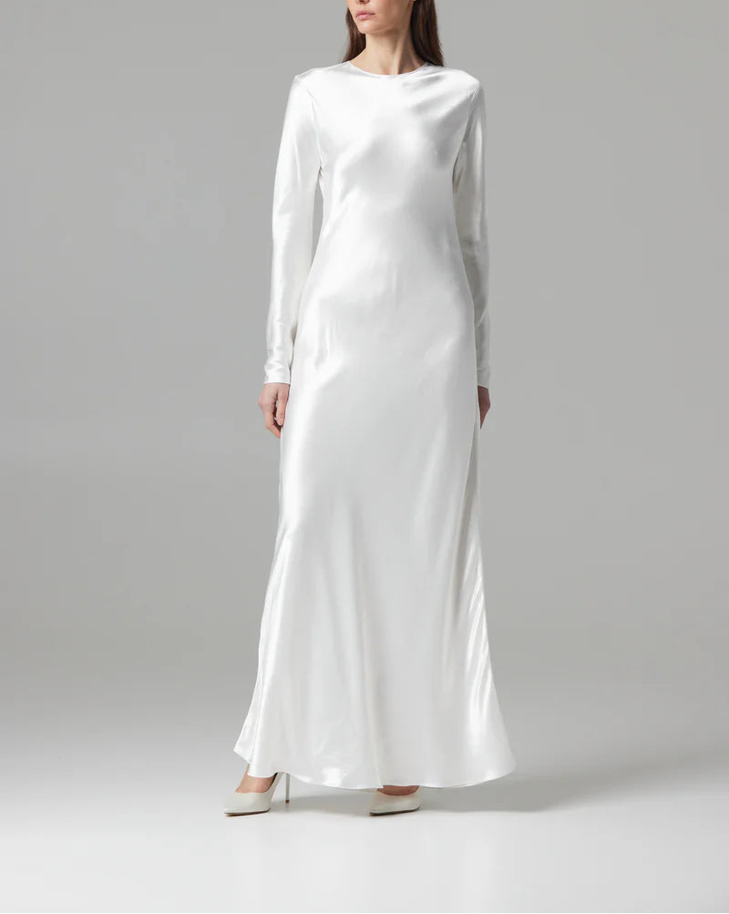 satin long-sleeve gown with fluid silhouette – IVORYE