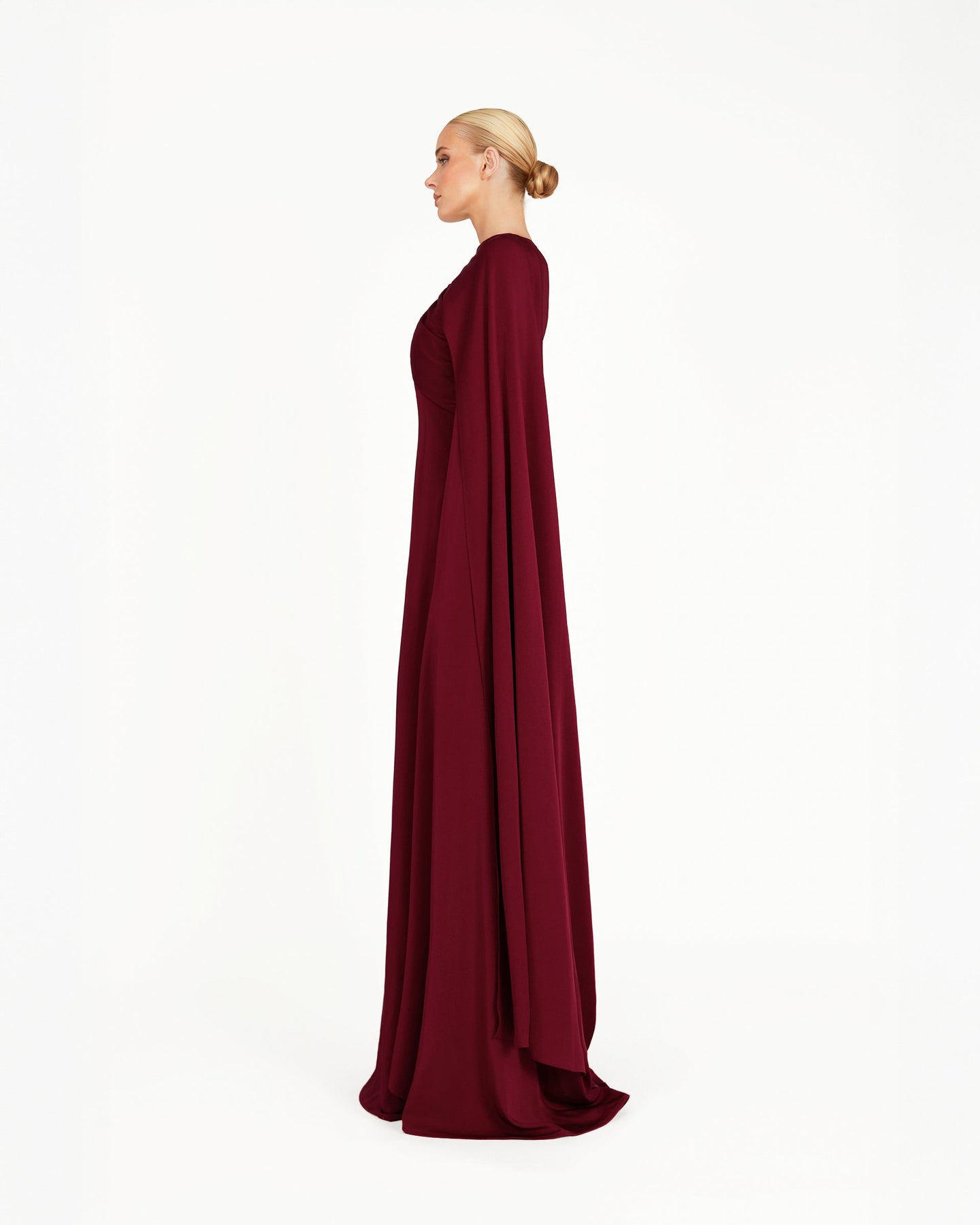 long cape-sleeve column gown with draped neckline – VALENTINA