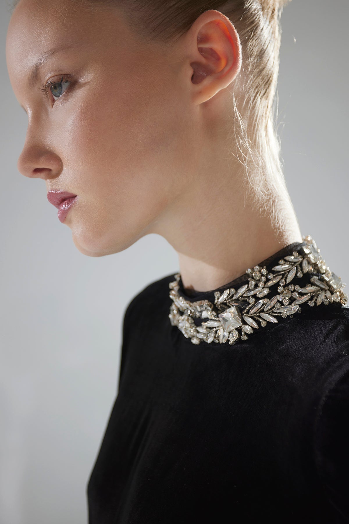 long-sleeve velvet column gown with crystal neckline – NOIRÉ