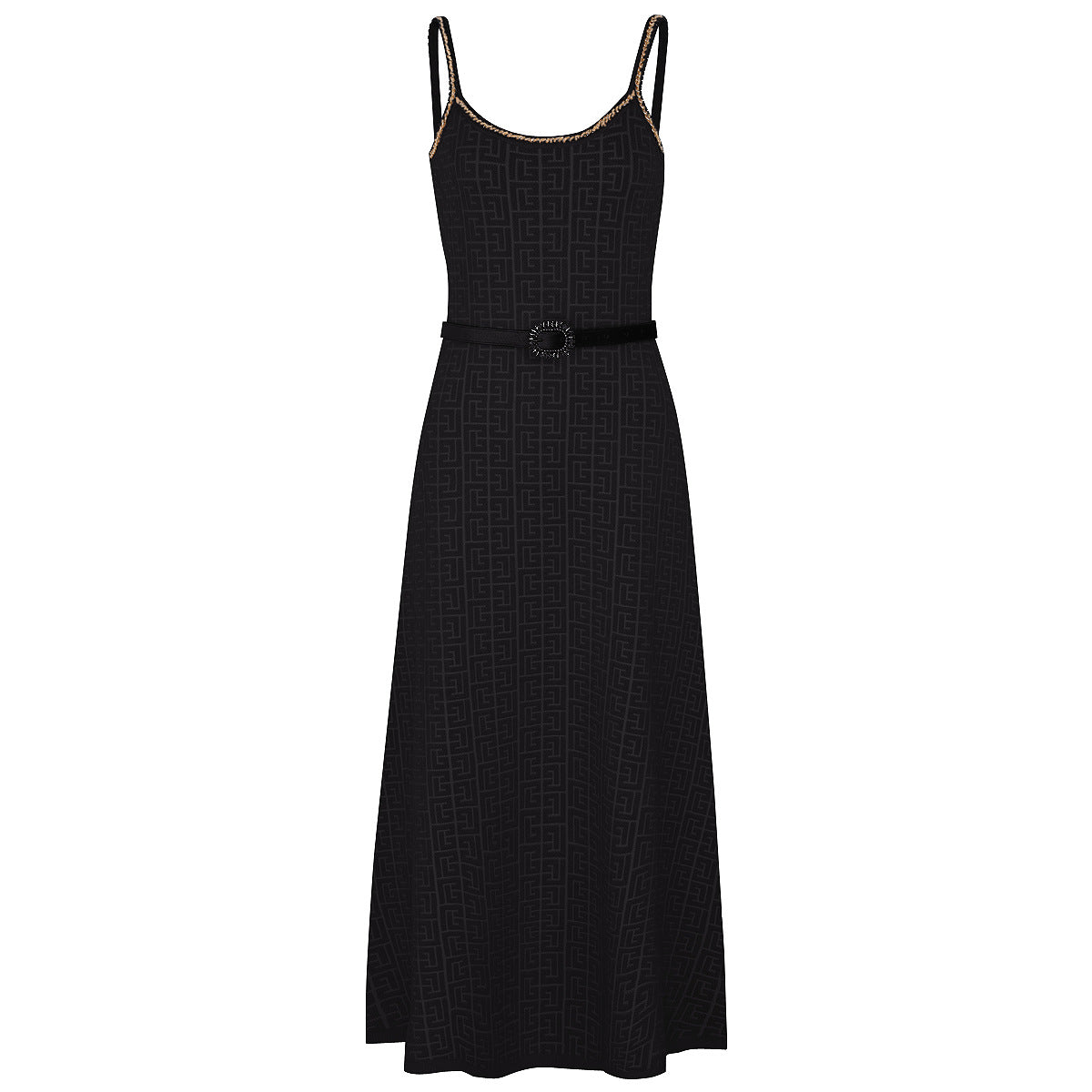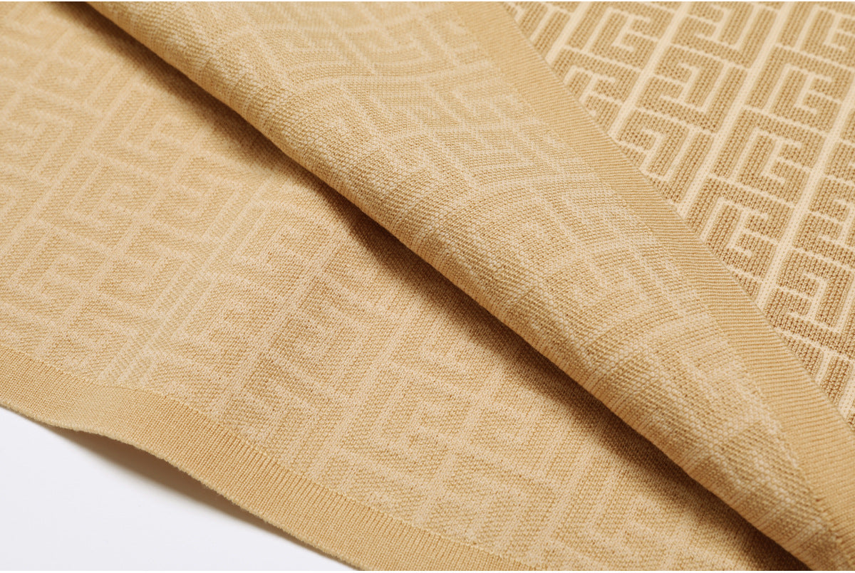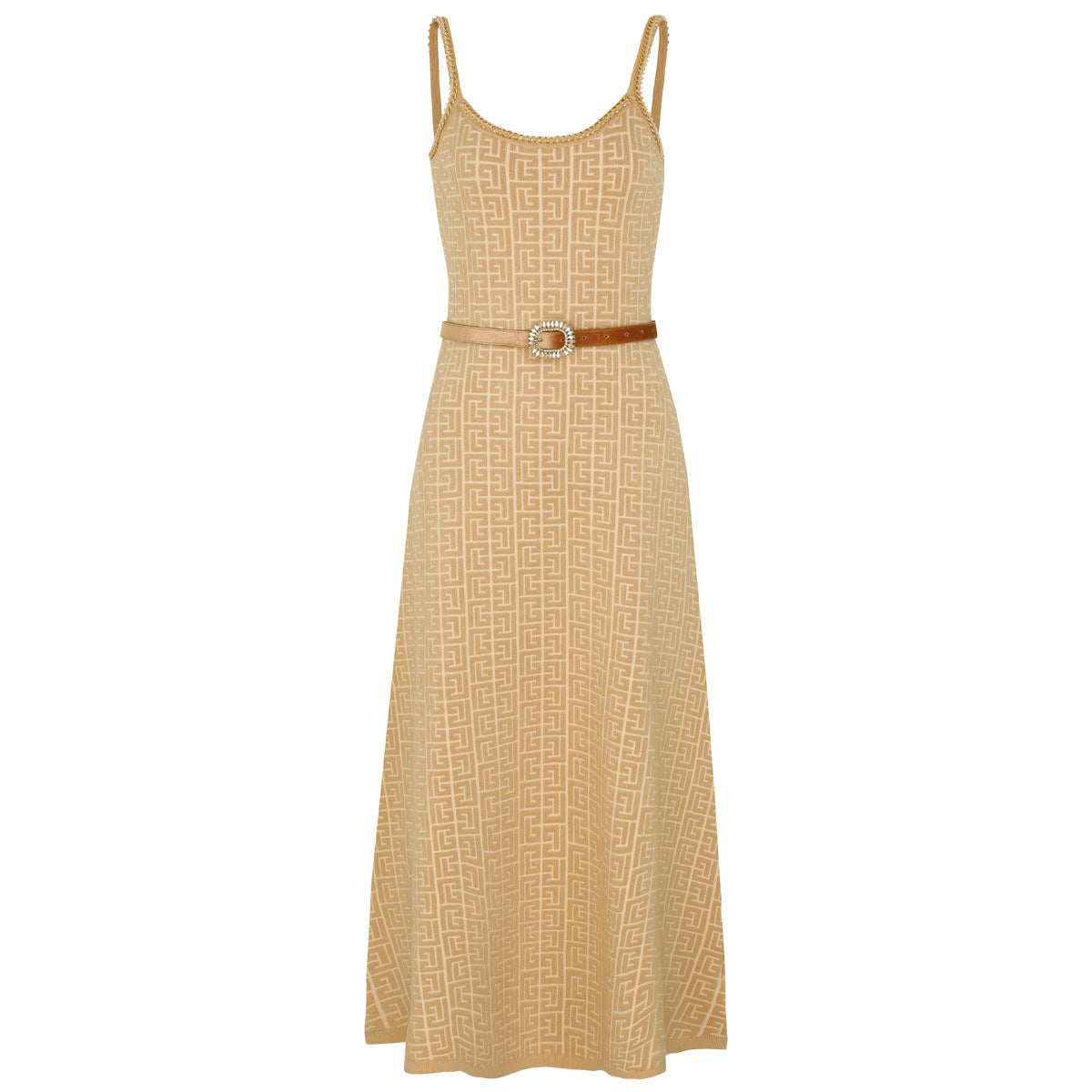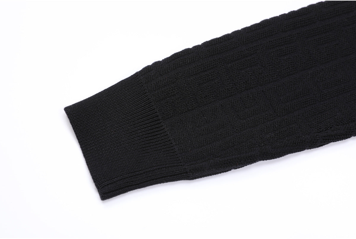 elegant knitted set featuring a sleeveless midi dress and matching cropped cardigan, both detailed with a geometric logo pattern and gold-tone buttons — timeless sophistication with a modern twist. Fabric name: viscose fiber Size Bust (cm) Waist (cm) Hips (cm) Shoulder (cm) Length (cm) Sleeve (cm) 2XS 80 68 — 35 46 56 XS 84 72 — 36 47 57 S 88 76 — 37 48 58 M 92 80 — 38 49 59 Size Bust (cm) Waist (cm) Hips (cm) Shoulder (cm) Length (cm) Sleeve (cm) 2XS 72 66 — — 116 — XS 76 70 — — 117 — S 80 74 — — 118 — M 84 78 — — 119 —