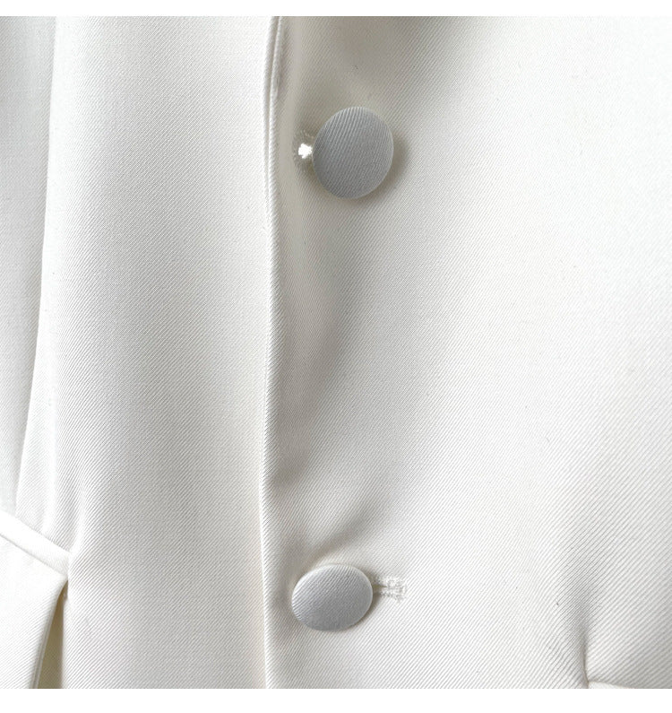 A dramatic tailored blazer elevated with a voluminous pleated ruffle sleeve detail, blending modern tailoring with avant-garde flair—perfect for making a bold statement. Fabric name: cotton and polyester Size Bust (cm) Shoulder (cm) Sleeve (cm) Length (cm) S 106 44 61 77 M 110 45 62 78 L 114 46 63 79