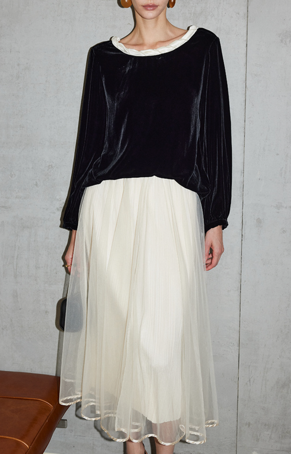 Elegant black velvet blouse featuring a statement ivory bow at the back for a refined contrast. Designed with a soft drape and feminine silhouette, this piece adds a subtle yet striking touch to evening looks and elevated day styling. Fabric: Silk Velvet Size: Size Length (cm) Bust (cm) Hem (cm) Shoulder (cm) Sleeve Length (cm) S 41 100 112 40 59 M 42 104 116 41 60 L 43 108 120 42 61 XL 44 112 124 43 62