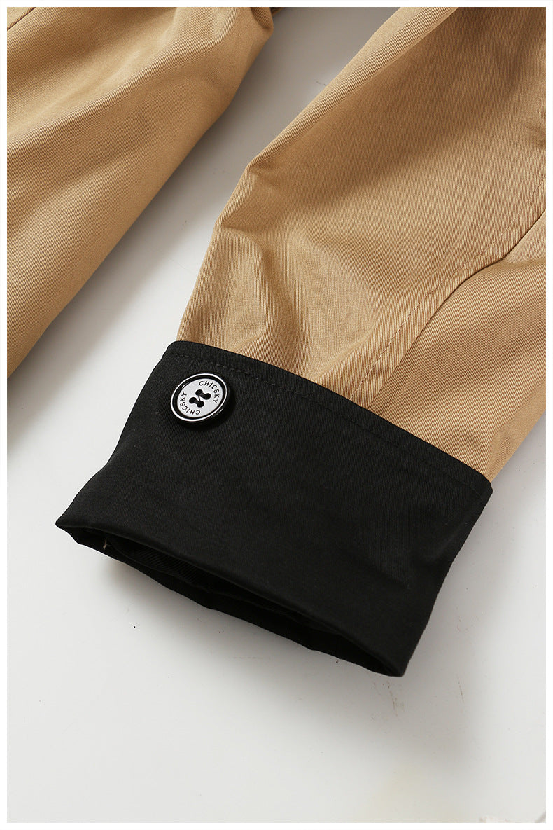 A refined trench-inspired dress featuring striking contrast panels and a structured belted waist. Designed with a classic collar, long sleeves, and a fluid midi silhouette, this piece blends timeless tailoring with a modern edge—ideal for elevated daywear or chic city looks.