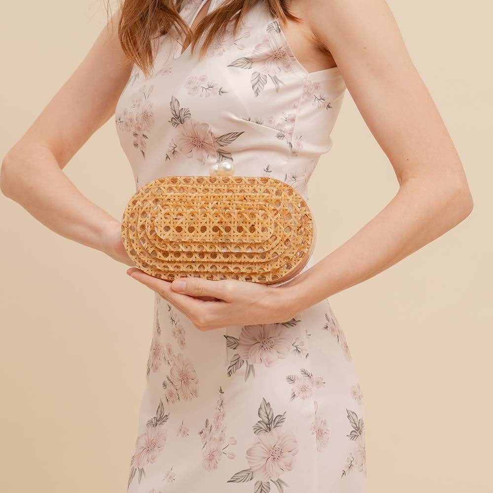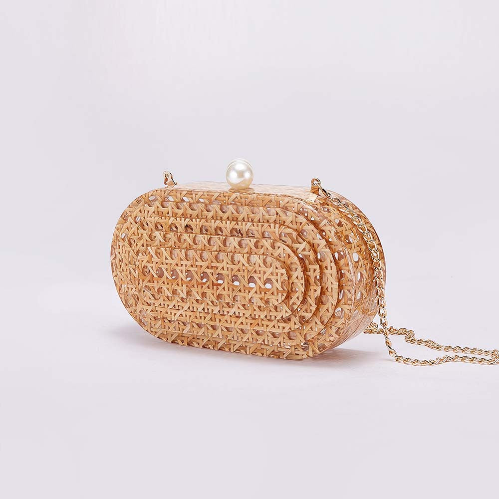 gewebte Rattan-Tragetasche mit doppelten Ledergriffen – LÉONIE