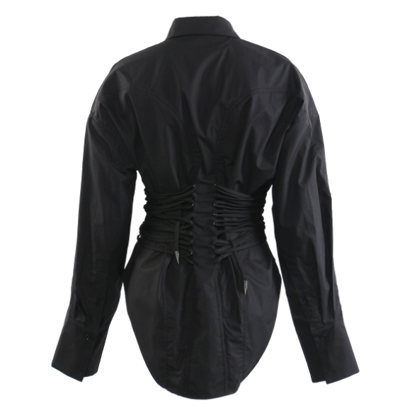 Corset-waist shirt dress with curved hem – BLANC