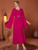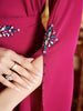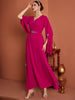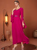 Befehlen Sie Aufmerksamkeit in diesem feurigen roten Anzug mit einem skulptierten asymmetrischen Blazer, weit geschnittenen Schlaghosen und einer dramatischen Federbrosche als Akzent auf der Schulter. Ein mutiges Statement für Galas, formelle Abendessen oder Momente auf dem roten Teppich.