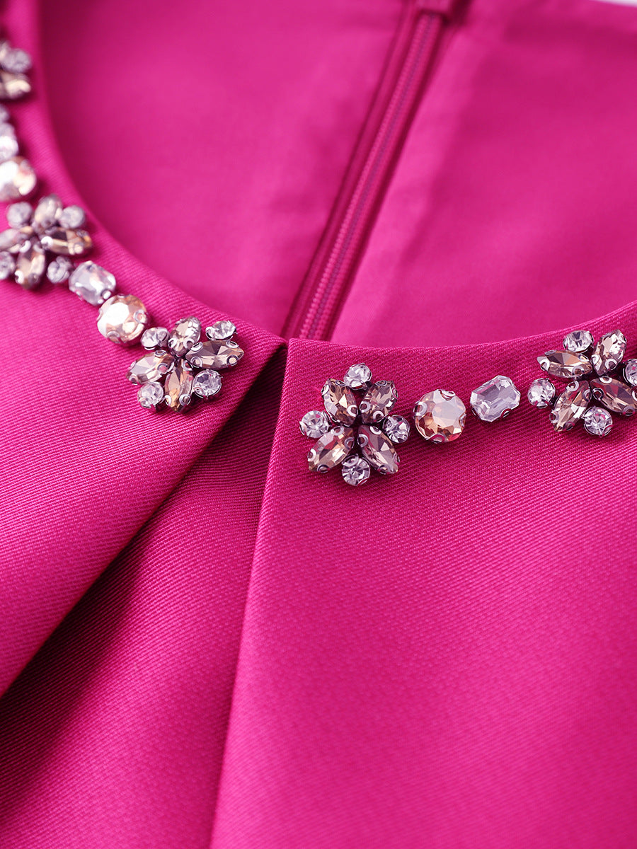 Ein elegantes und anspruchsvolles Kleid, das ein einfaches Design mit kurzen Ärmeln und stilvollen Seitentaschen aufweist. Eine zarte Blumenbrosche fällt auf der Brust auf und verleiht ihrem eleganten und schicken Design einen Hauch von Charme.