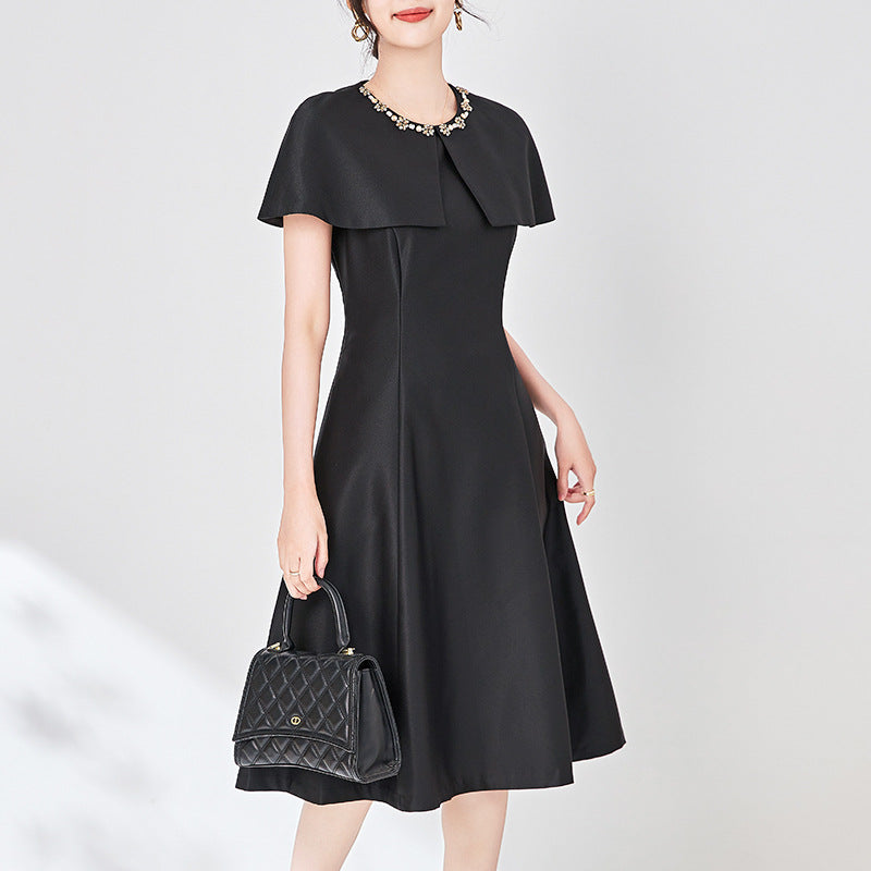 Kurzarmkleid mit ausgestelltem Rock und verziertem Mini-Cape - DAPHNES