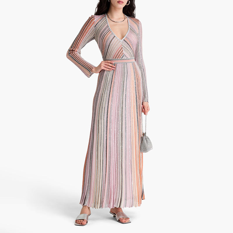Haut à manches évasées plissées et ensemble jupe longue avec ceinture à la taille – Rosiny