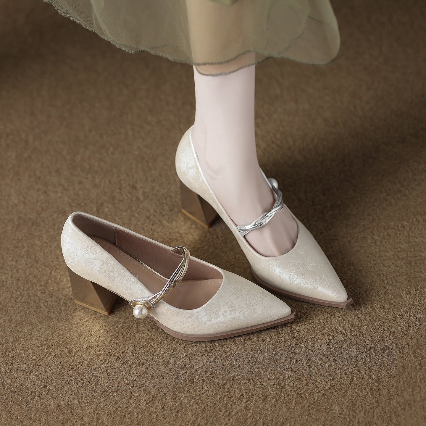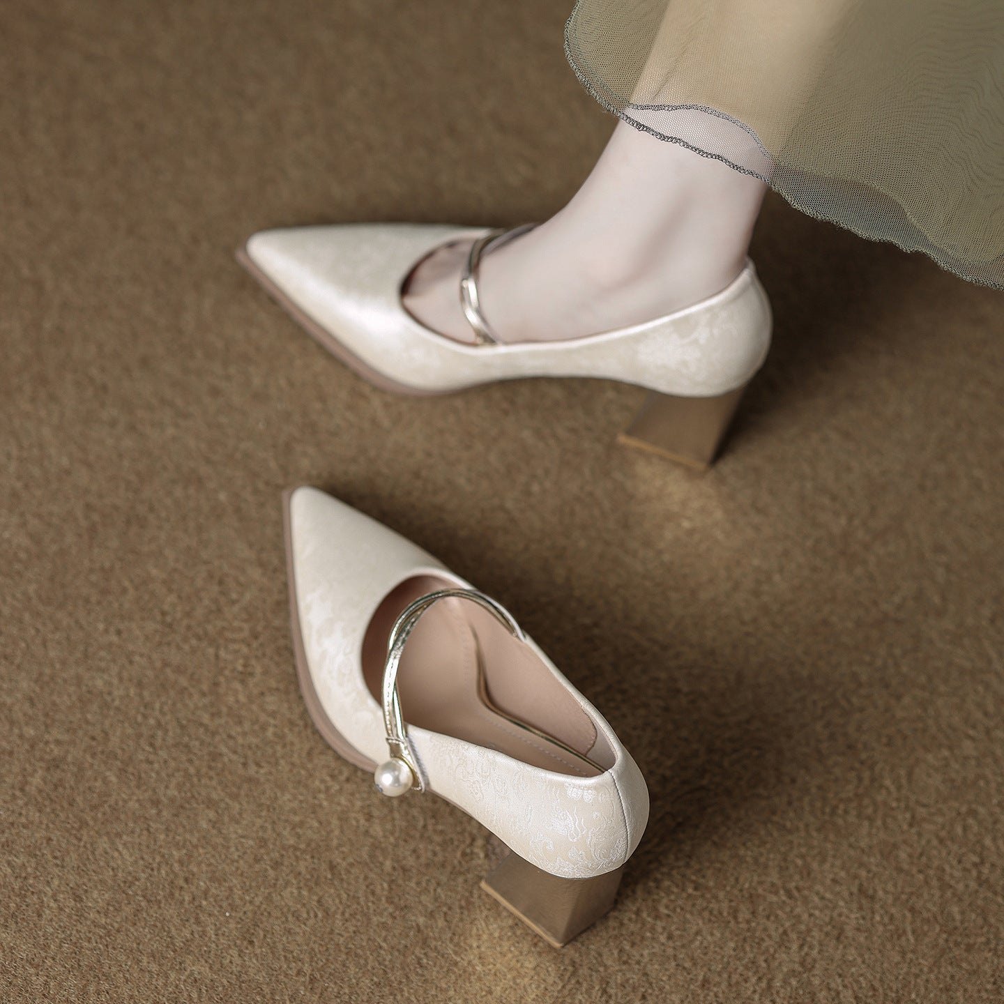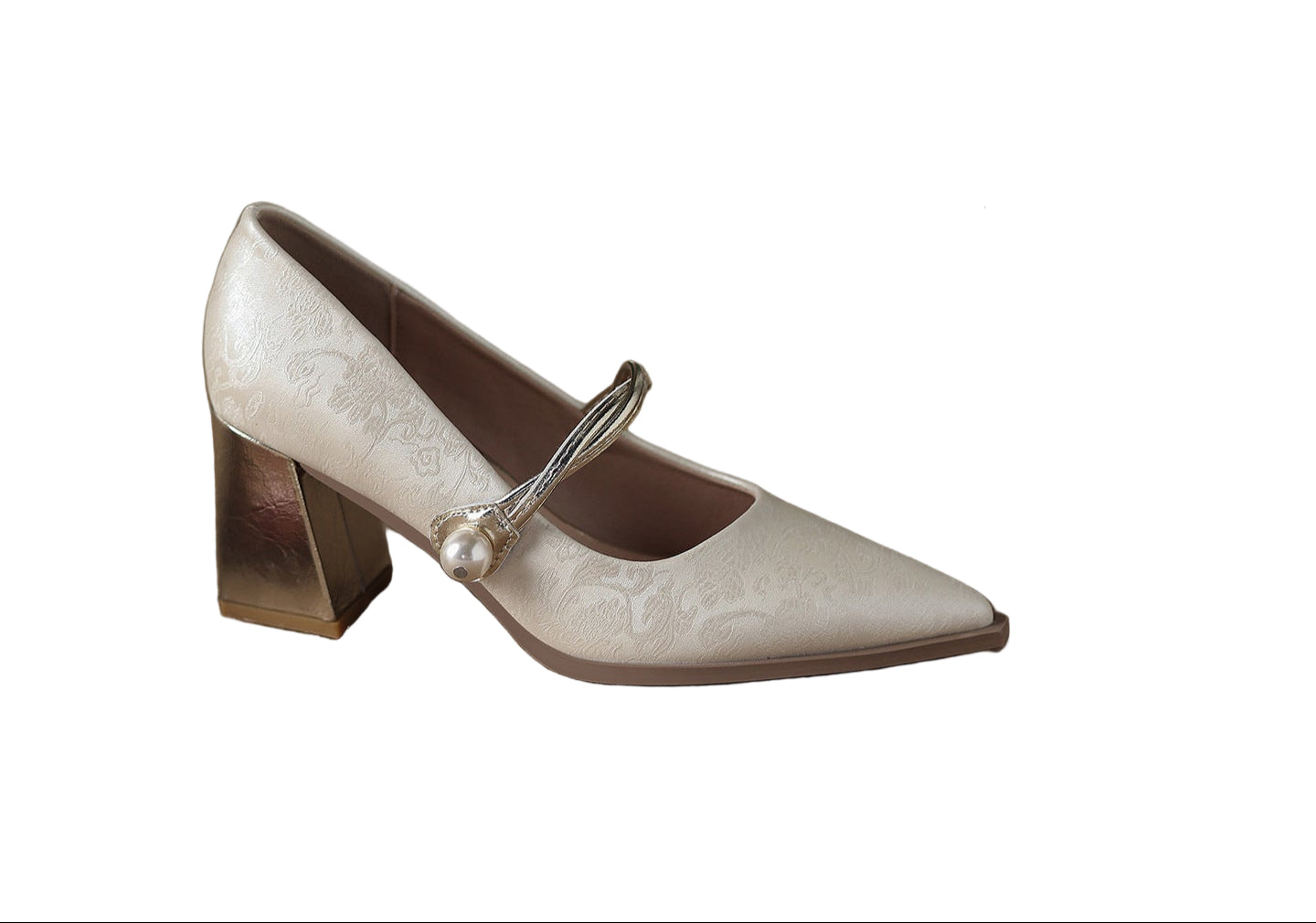 Cette élégante et sophistiquée chaussure à bout pointu est confectionnée en cuir verni noir brillant pour un look soigné. La caractéristique signature—une bordure en fourrure grise douce à l'avant—ajoute une touche luxueuse à ce design classique. Conçu avec un talon haut et élancé et une doublure douce de ton doré, ce soulier distinctif combine sans effort élégance et sophistication, que ce soit pour une tenue de soirée ou des occasions sophistiquées.