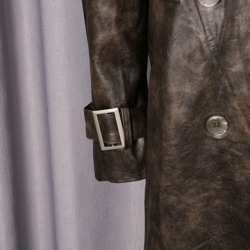 double-breasted leather trench coat with wide lapels – NOIRÉ