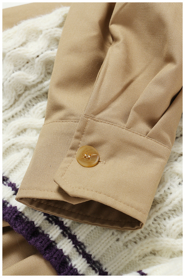 A fashion-forward layered top combining a structured beige shirt with an asymmetric cable-knit vest overlay. Designed with mixed textures, contrast sleeves, and an off-center hem for an effortlessly artistic look—perfect for modern styling and statement everyday outfits.