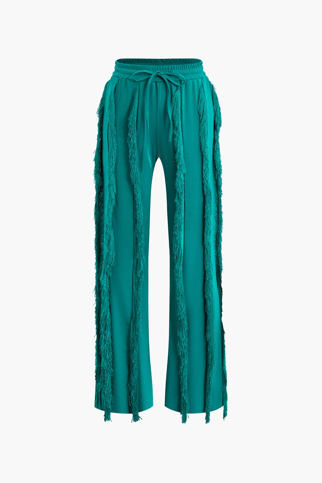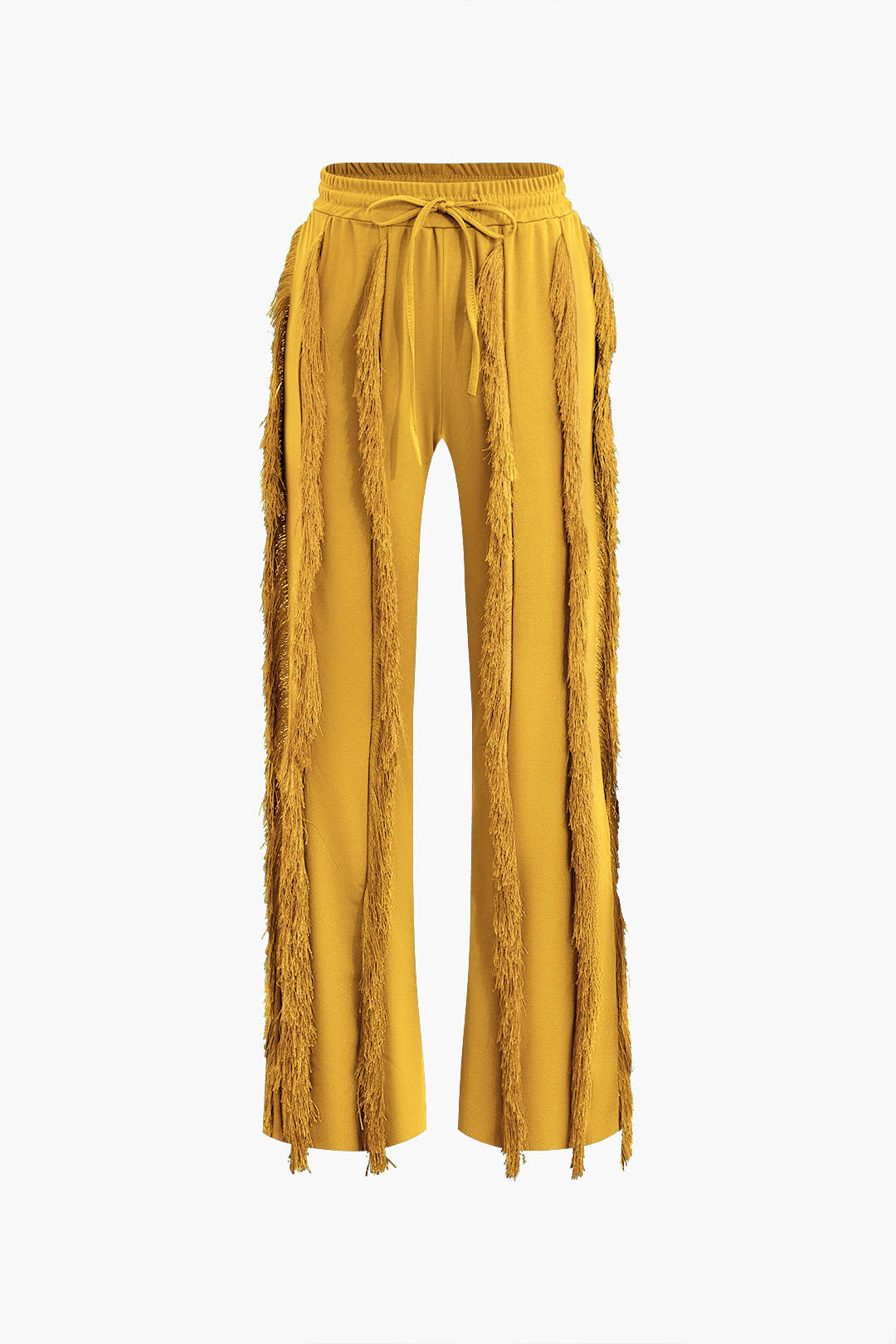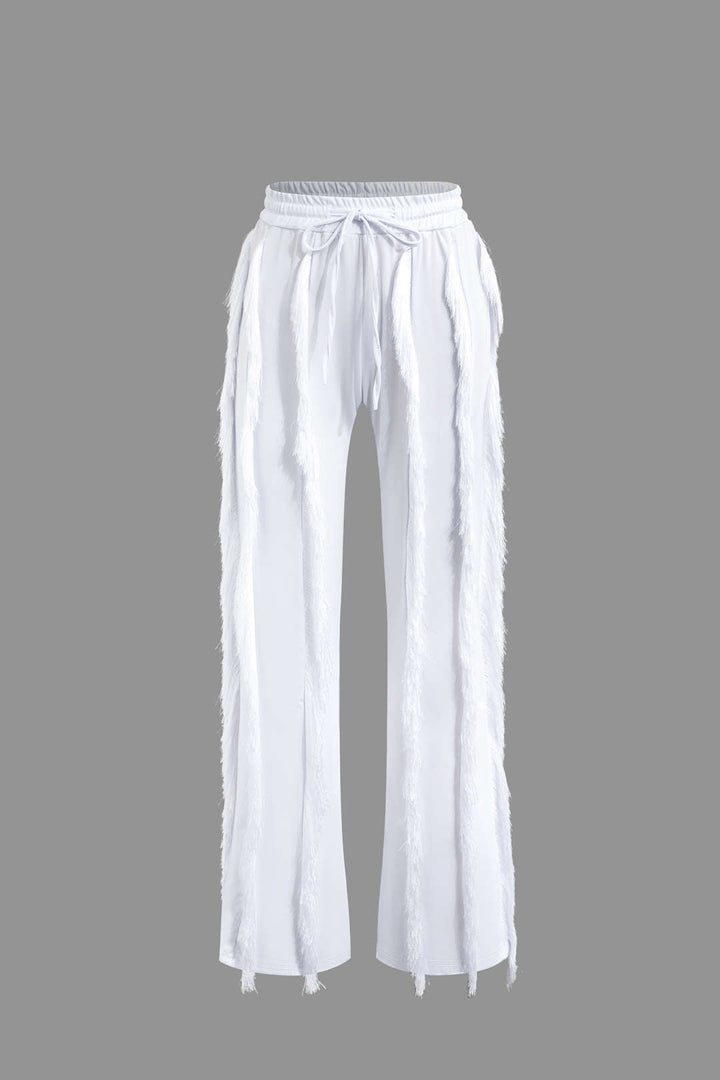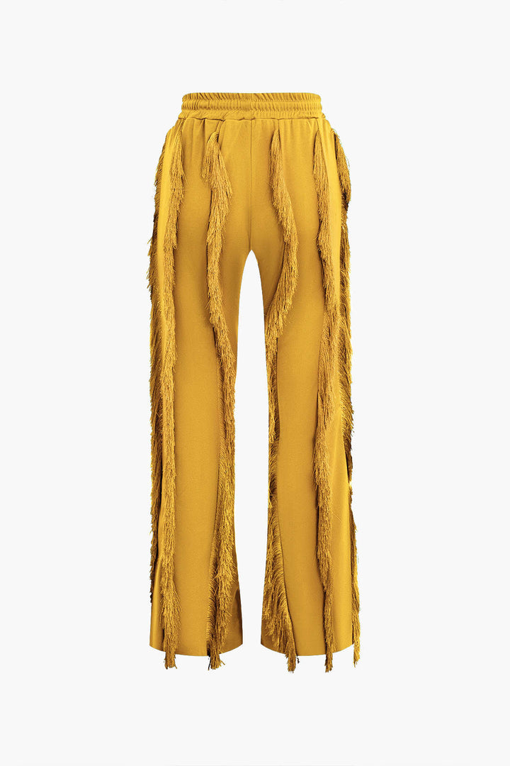 Bustier Slip Bodysuit And Fringe Tie Front Wide Leg Trousers Set