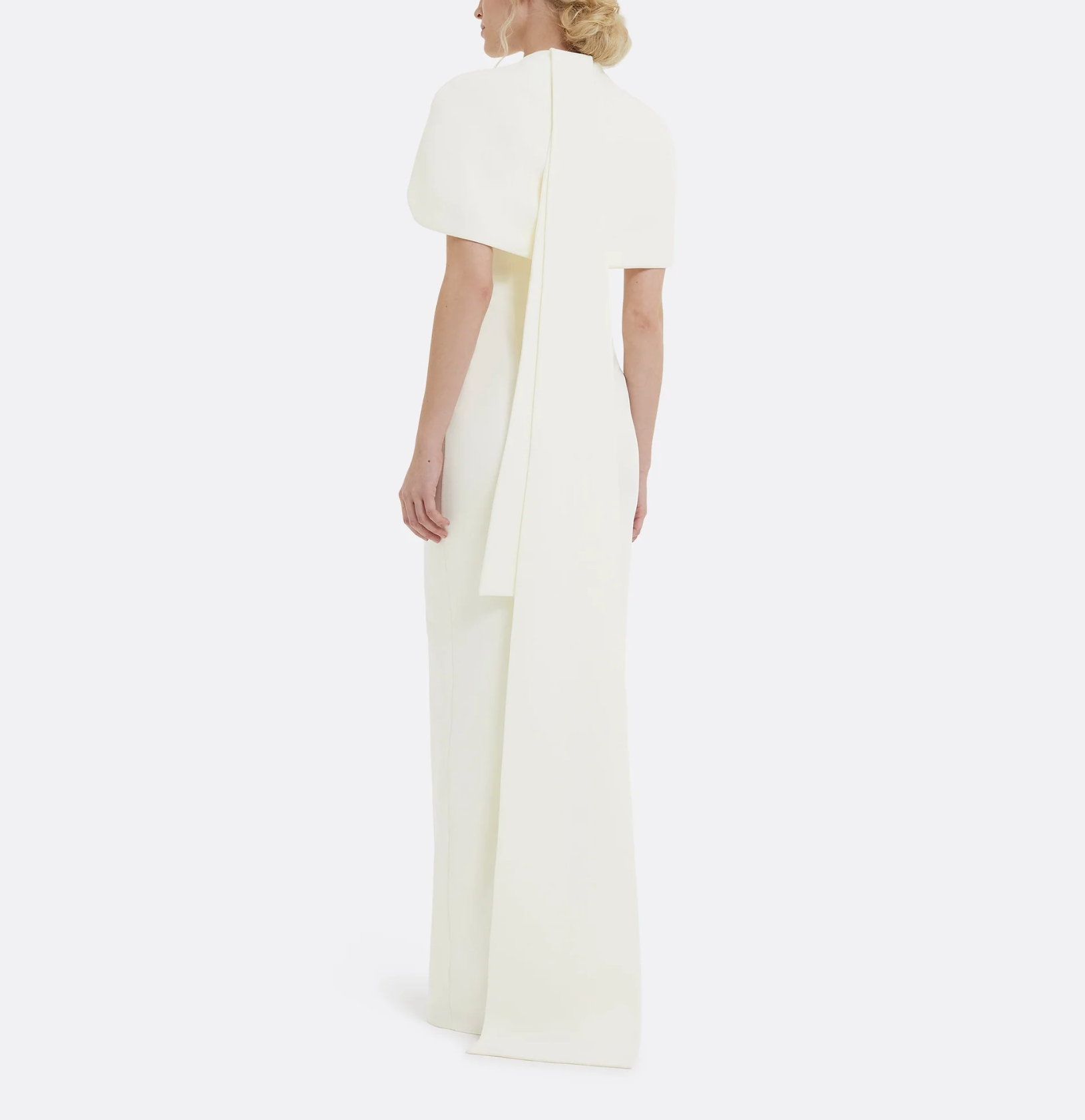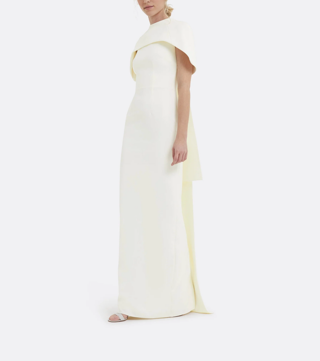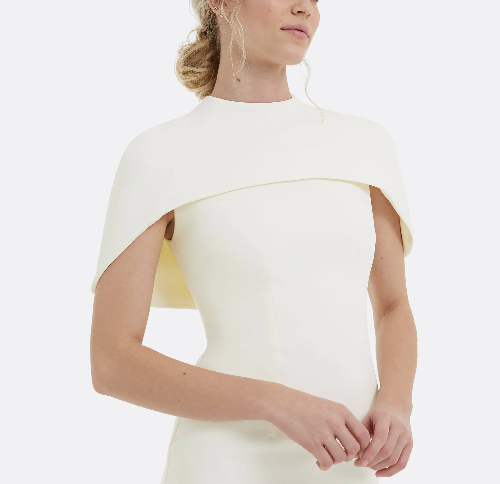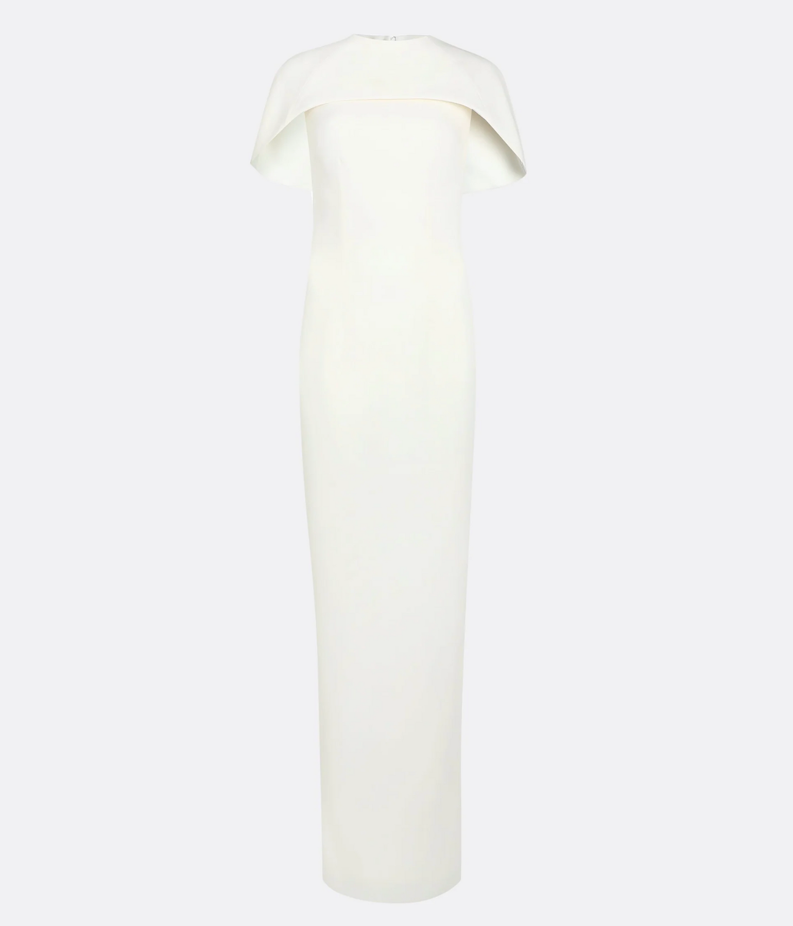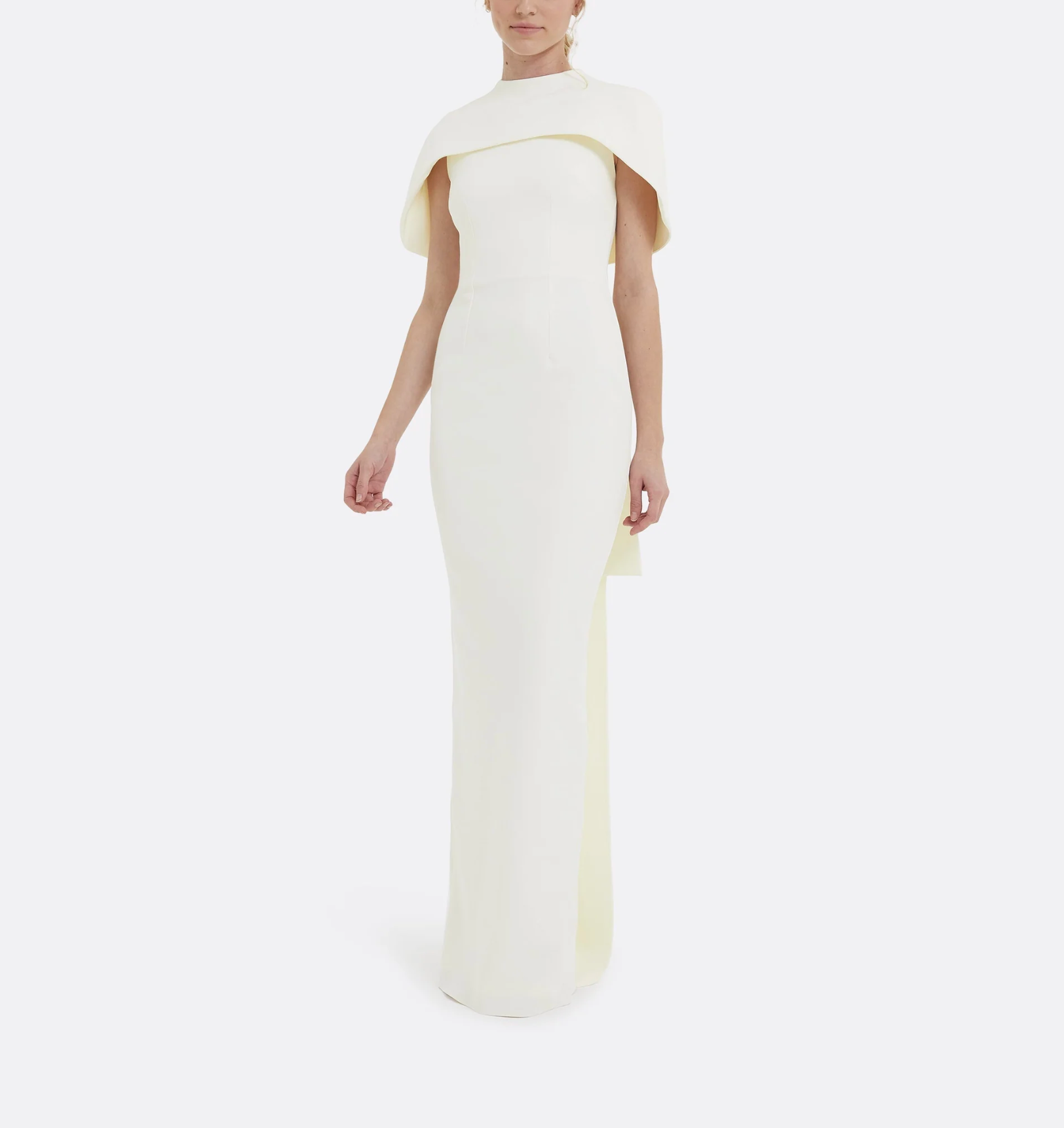 high-neck column dress with sculpted shoulder cape – Gofaan