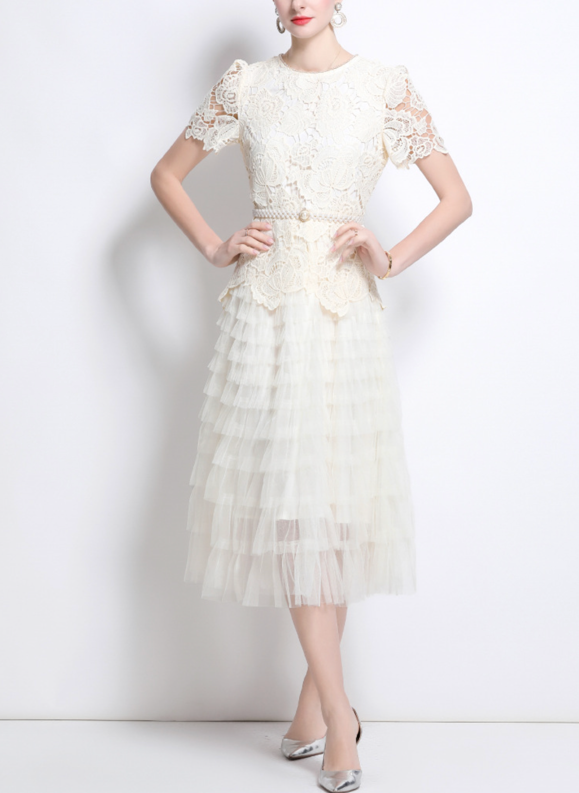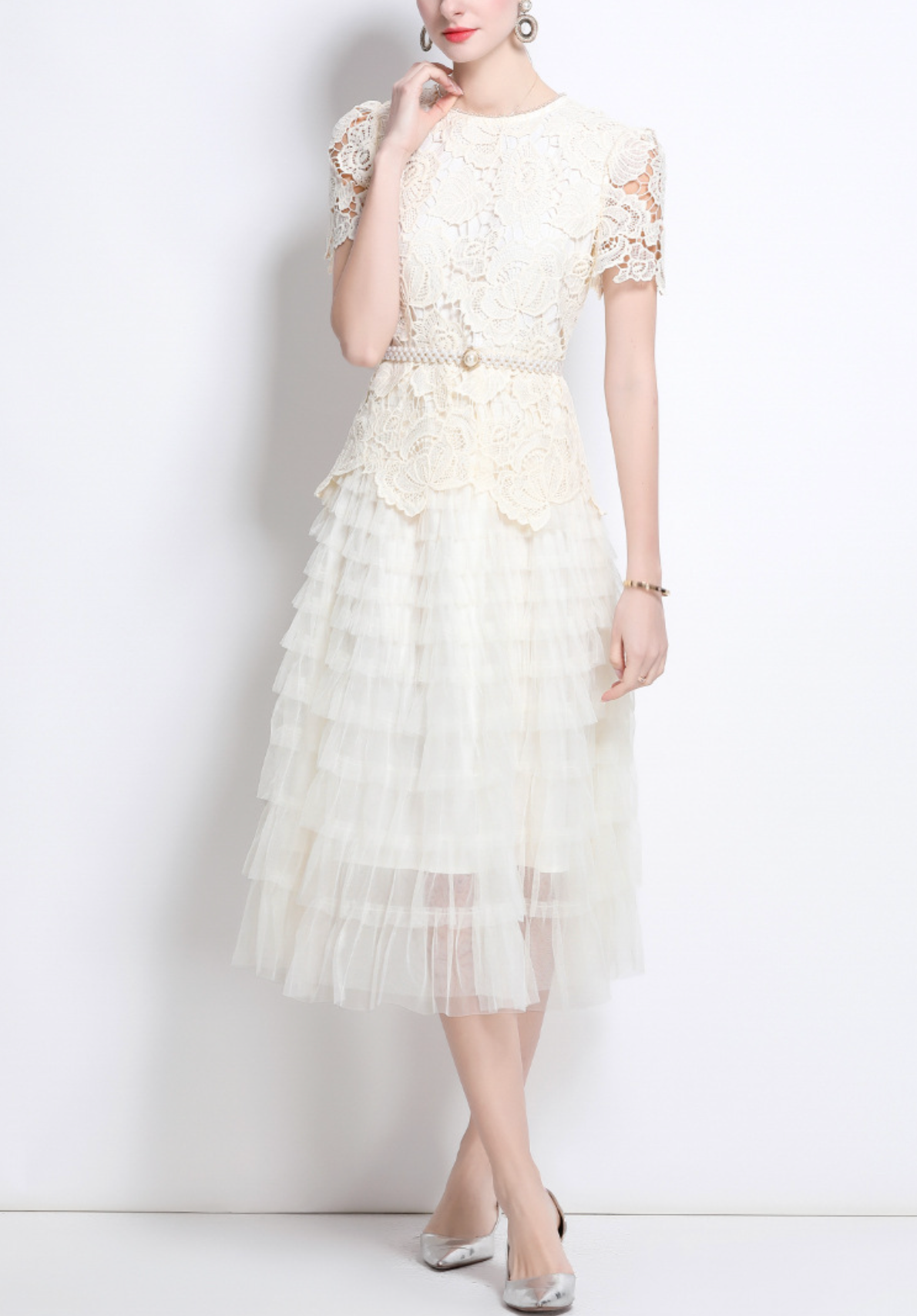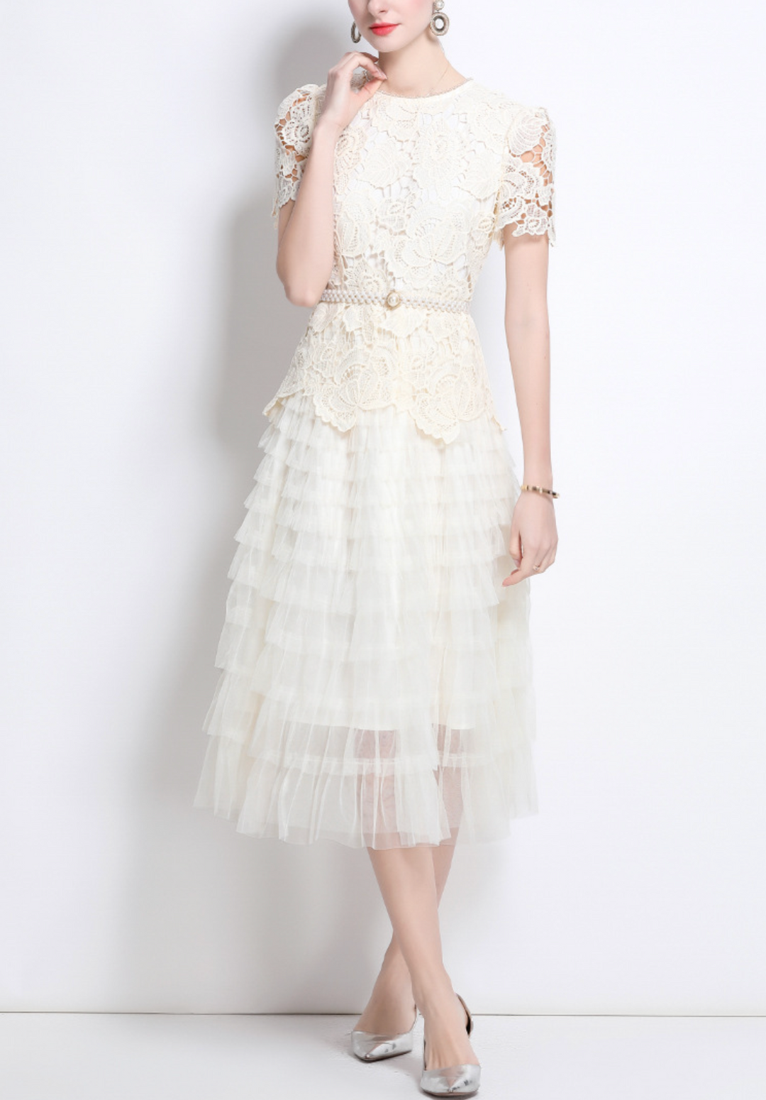 robe midi évasée sans manches avec ceinture chaîne - CELIAV