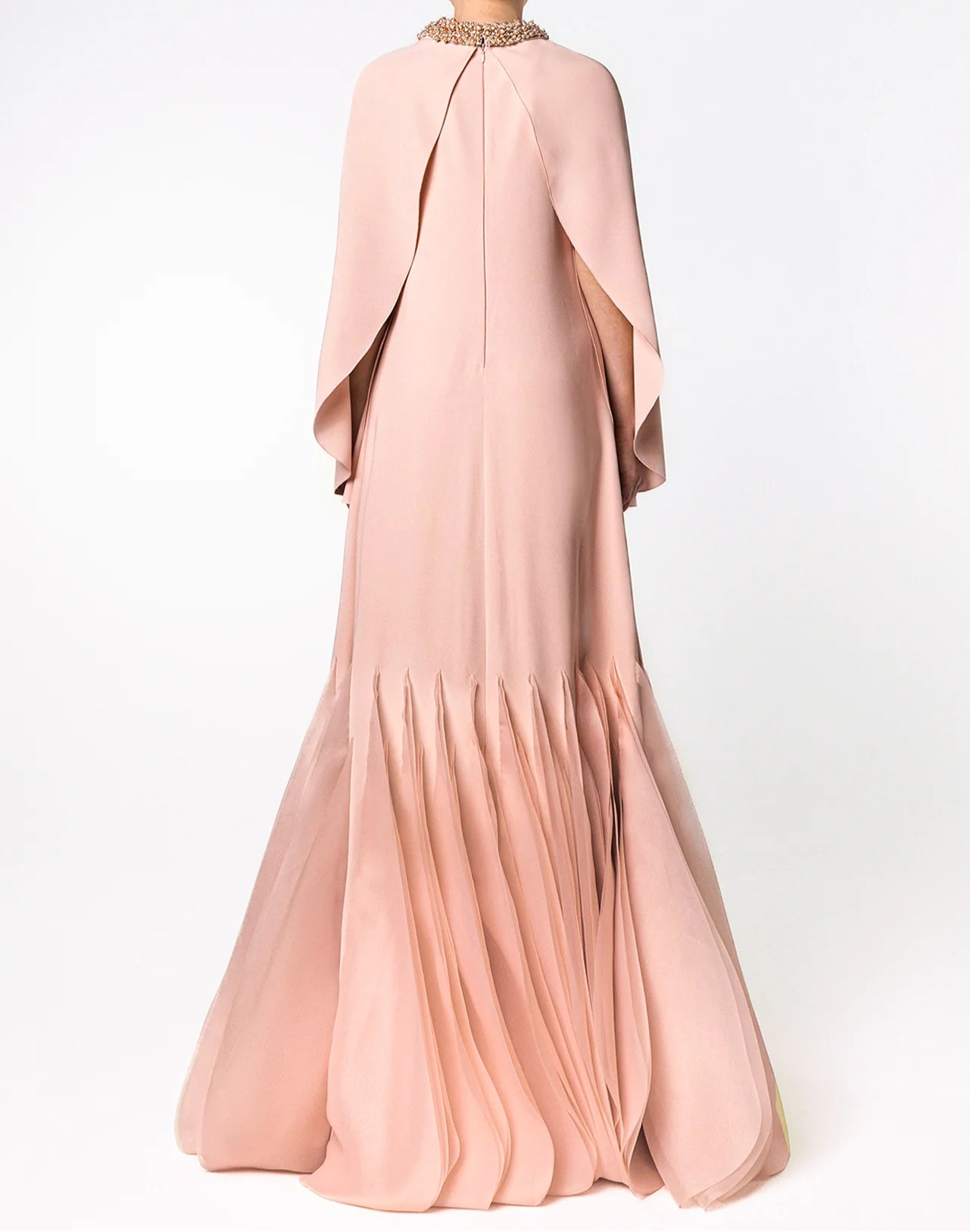 Long Sleeve A-Line Gown with Pleated Chiffon Hem and Embellished Neckline - ROSA