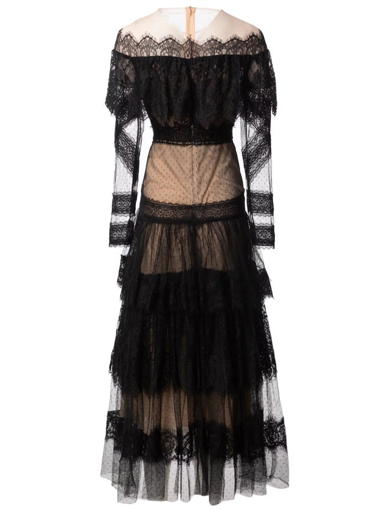 off-shoulder lace midi dress with tiered ruffles – SCARLETTE