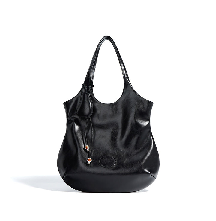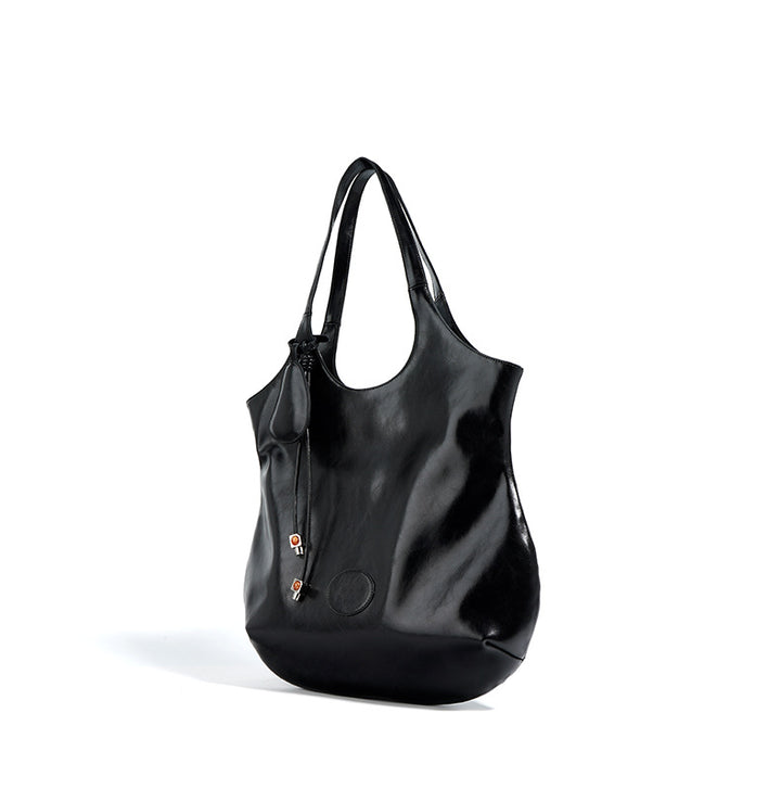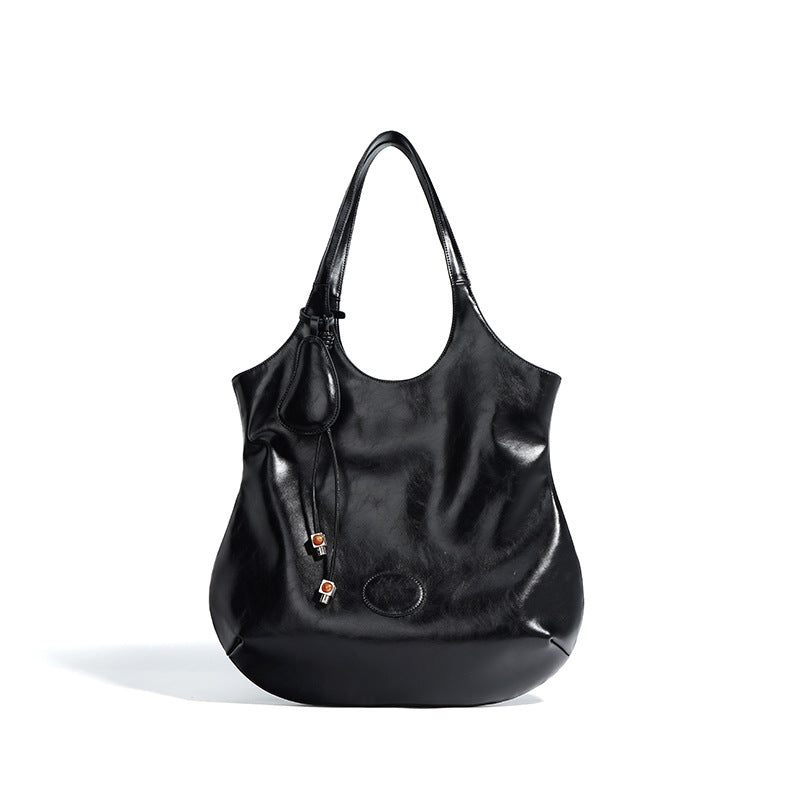 Sculptural sans effort, ce sac tissé noir et blanc présente une silhouette incurvée, des poignées supérieures structurées et un passepoil noir élégant. Un compagnon léger mais audacieux pour vos essentiels quotidiens.