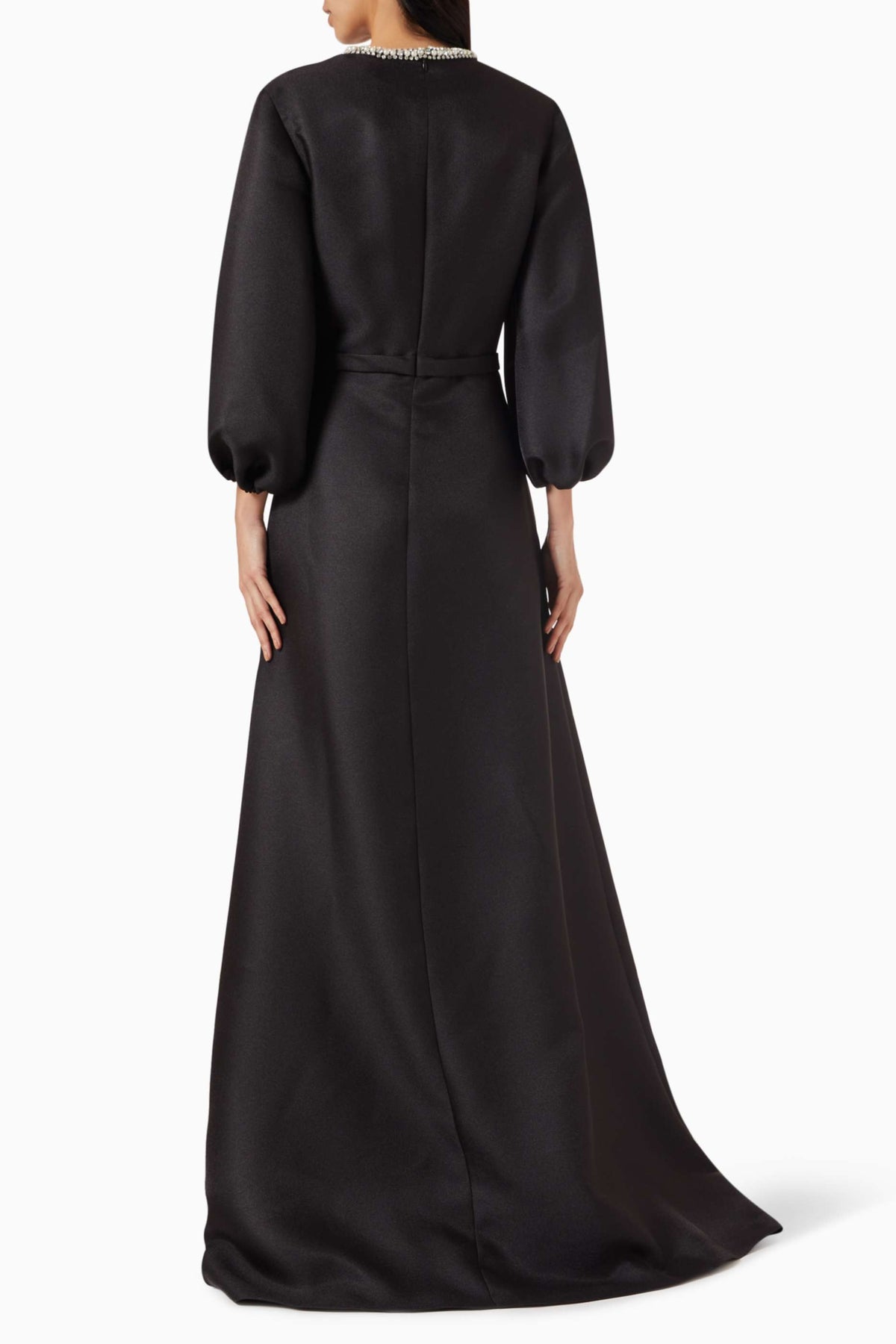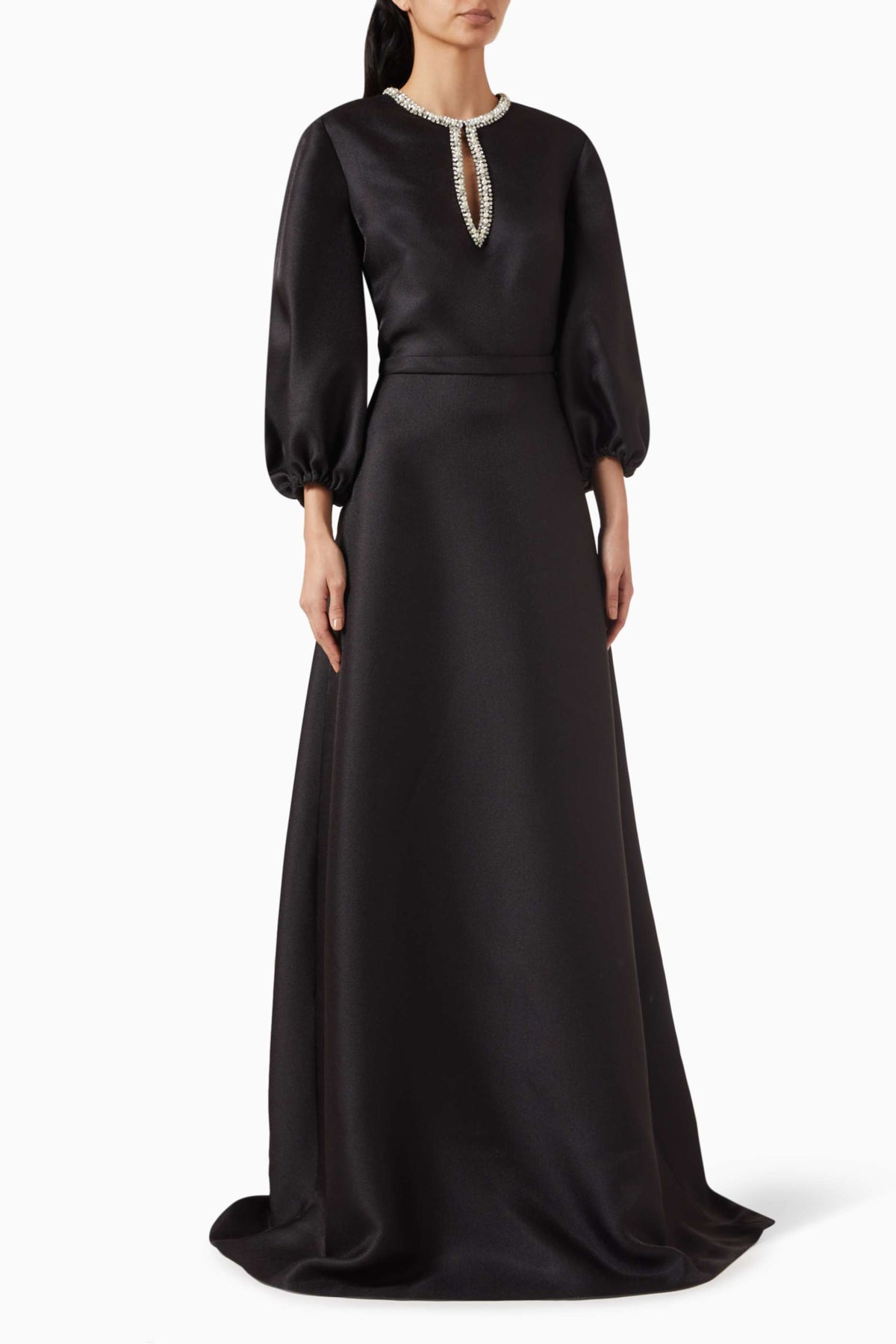 satin gown with embellished neckline and puff sleeves – DARIANA