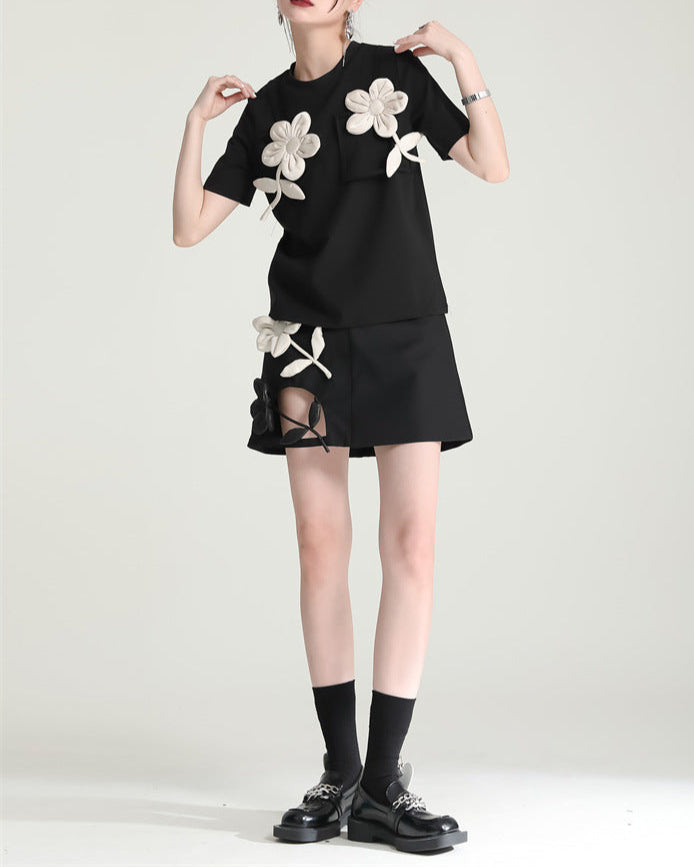 Sculptural sans effort, ce sac tissé noir et blanc présente une silhouette incurvée, des poignées supérieures structurées et un passepoil noir élégant. Un compagnon léger mais audacieux pour vos essentiels quotidiens.