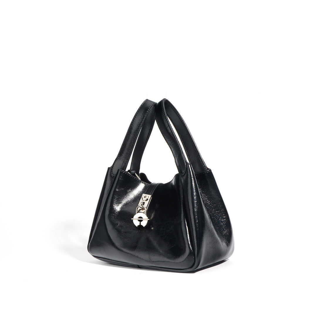 Sculptural sans effort, ce sac tissé noir et blanc présente une silhouette incurvée, des poignées supérieures structurées et un passepoil noir élégant. Un compagnon léger mais audacieux pour vos essentiels quotidiens.
