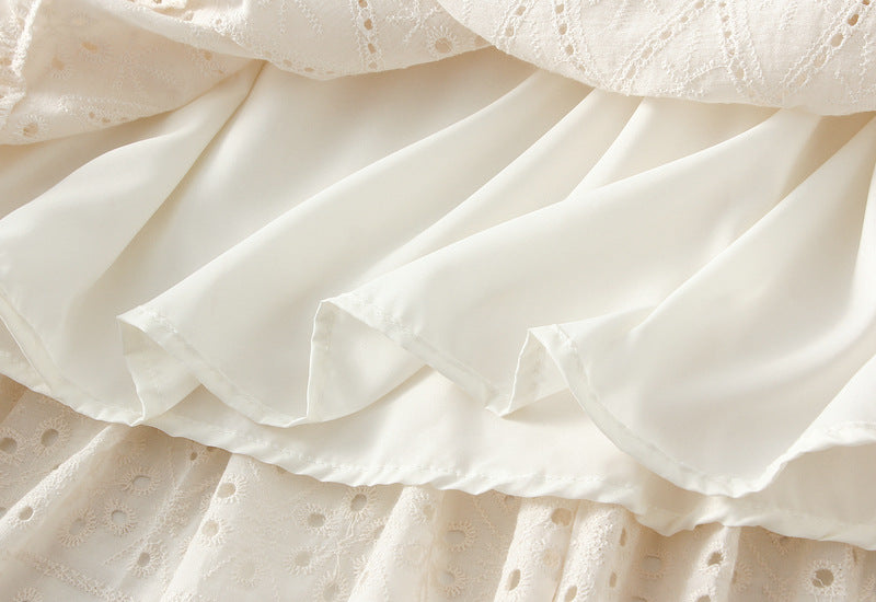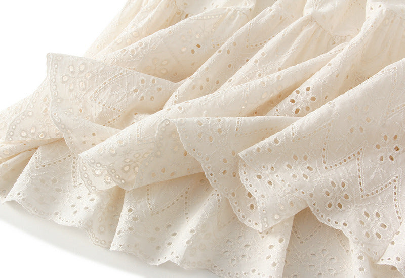 tiered cotton skirt with embroidered eyelet detailing – NOIR