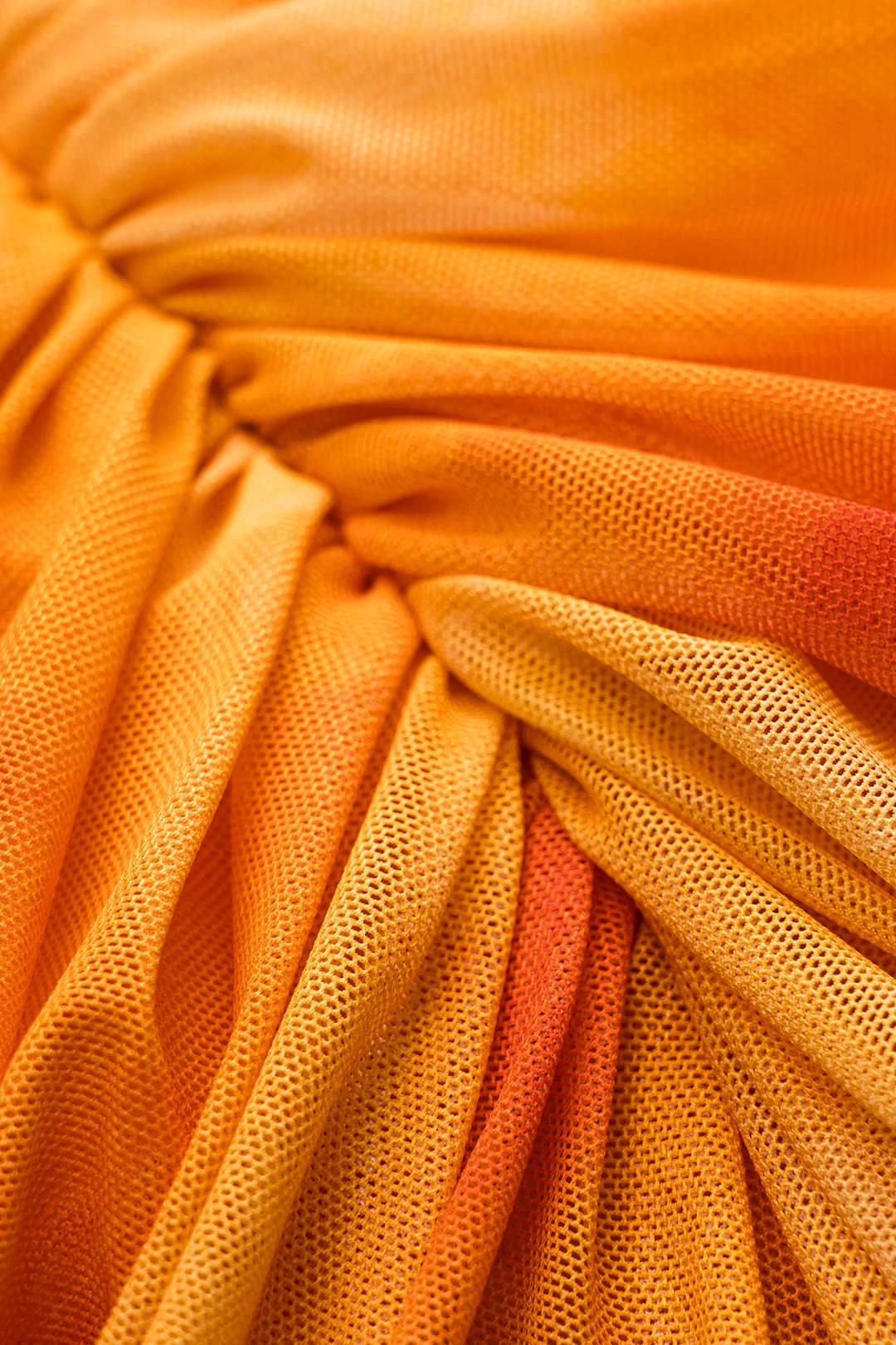 Watercolor Print Mesh Ruched Slip Midi Dress