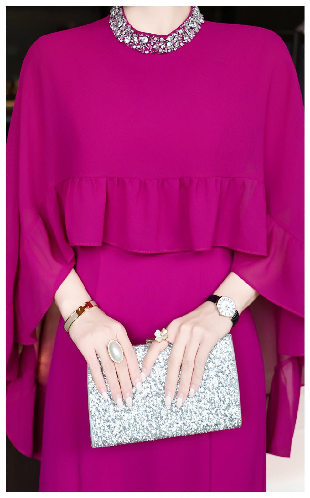 black cape-overlay gown with ruffled chiffon tier – ELIORA